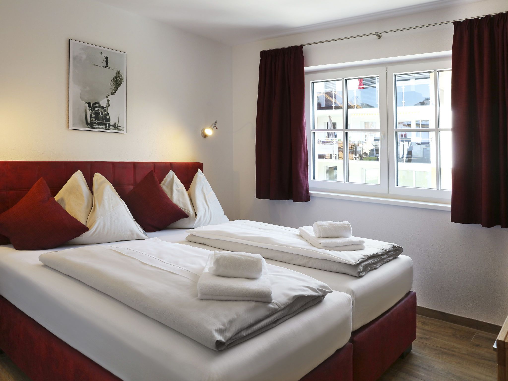 Superior 211 für bis zu 6 Personen, 3-Zimmer-Wohnung 68 m2 im 1. Stock. Hell, geschmackvoll eingerichtet: Wohn-/Schlafzimmer mit 1 Doppeldiwanbett, Essecke und Sat-TV (Flachbildschirm). 2 Doppelzimmer. Offene Küche (Backofen, Geschirrspüler, 4 Glaskeramikplatten, Toaster, Wasserkocher, Mikrowelle, elektrische Kaffeemaschine). 2 Duschen/WC. Terrasse 10 m2. Terrassenmöbel. Schöne Sicht auf die Berge. Zur Verfügung: Haartrockner. Internet (Wireless LAN, gratis). Bitte beachten: Nichtraucher-Unterkunft. 50616-001305-2020