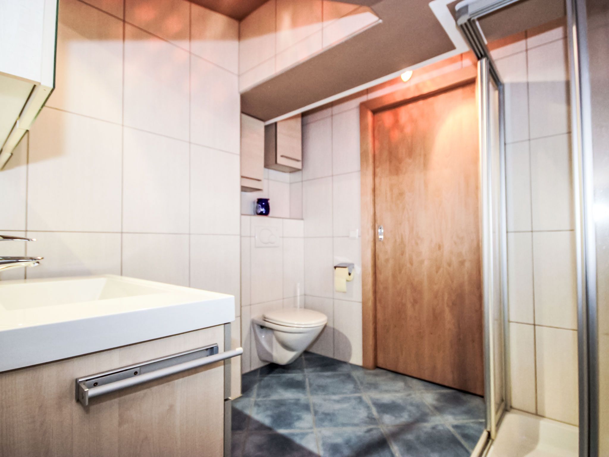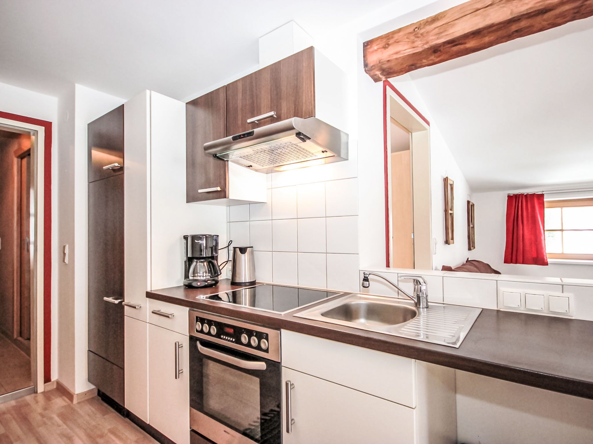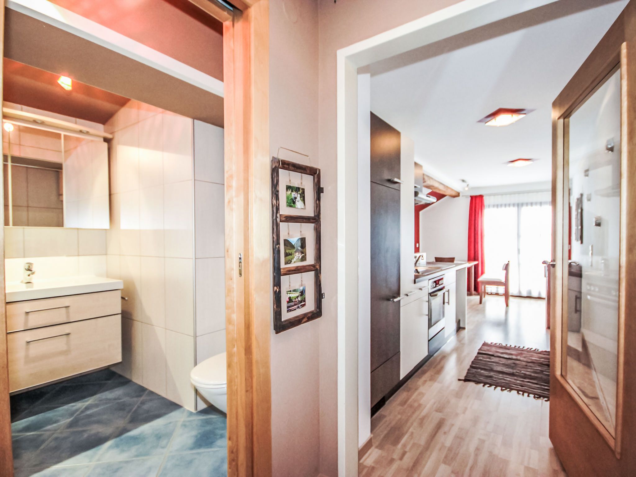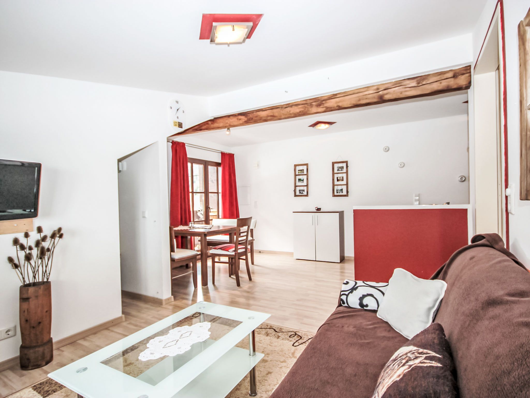 Gamsblick, 2-Zimmer-Wohnung 50 m2, im Dachgeschoss. Objekt geeignet für 2 Erwachsene + 2 Kinder. Teilweise abgeschrägt, schön und gemütlich eingerichtet: Eingang. 1 Zimmer mit 1 franz. Bett (140 cm, Länge 200 cm), Kabel-TV (Flachbildschirm). Wohn-/Schlafzimmer mit 1 Doppeldiwanbett, Esstisch und Kabel-TV (Flachbildschirm). Ausgang zum Balkon. Offene Küche (Backofen, Tiefkühler, elektrische Kaffeemaschine). Dusche/WC. Balkon, Südlage. Abstellkammer. Herrliche Sicht auf die Berge und die Landschaft. Zur Verfügung: Internet (Wireless LAN, gratis). Bitte beachten: eigener Eingang, Rauchmelder, kein Fahrstuhl. Parkplatz hinter dem Haus!