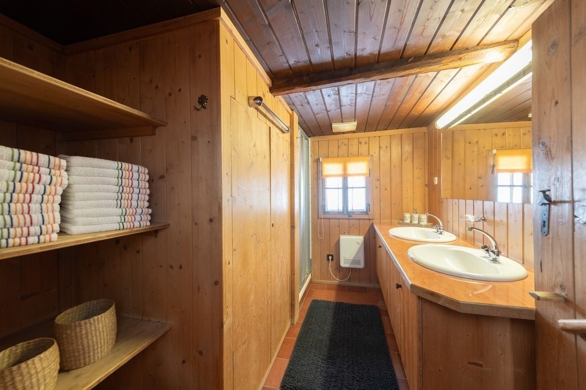 Es gibt ein Badezimmer mit Dusche und Waschbecken sowie eine weitere Dusche im Erdgeschoss. Zwei separate WCs sorgen zusätzlich für Komfort, auch bei voller Belegung des Hauses.