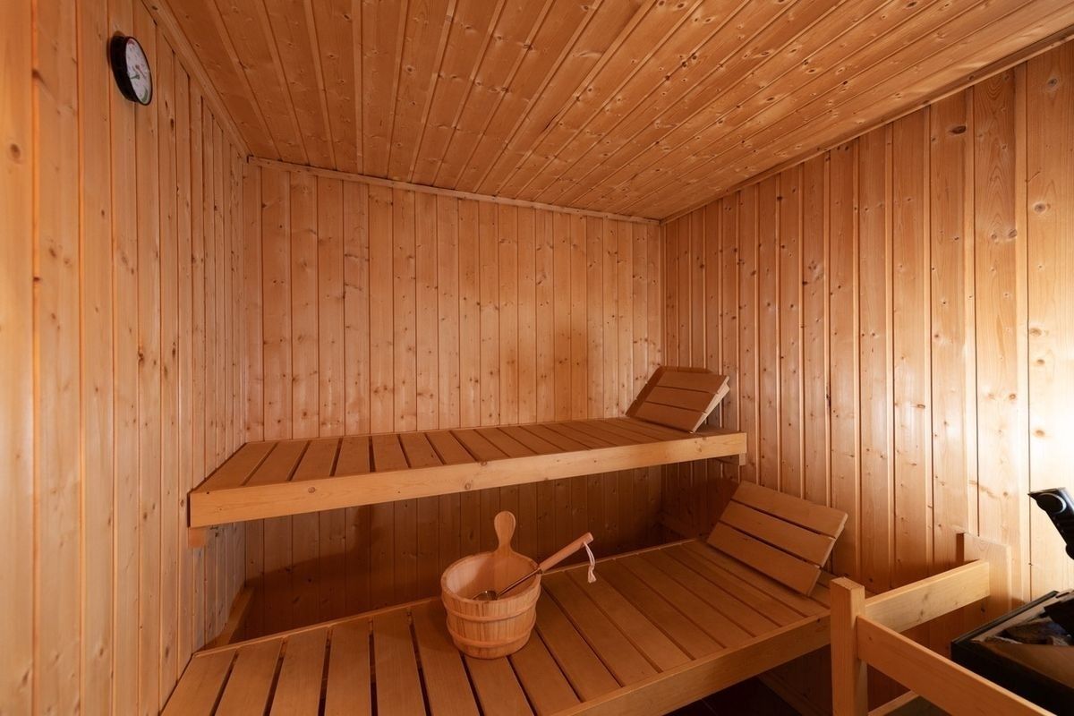 Nach einem aktiven Tag auf der Piste oder am Berg steht den Gästen eine eigene Sauna mit Ruhebereich und Liegestühlen zur Verfügung – ideal zum Abschalten und Regenerieren.