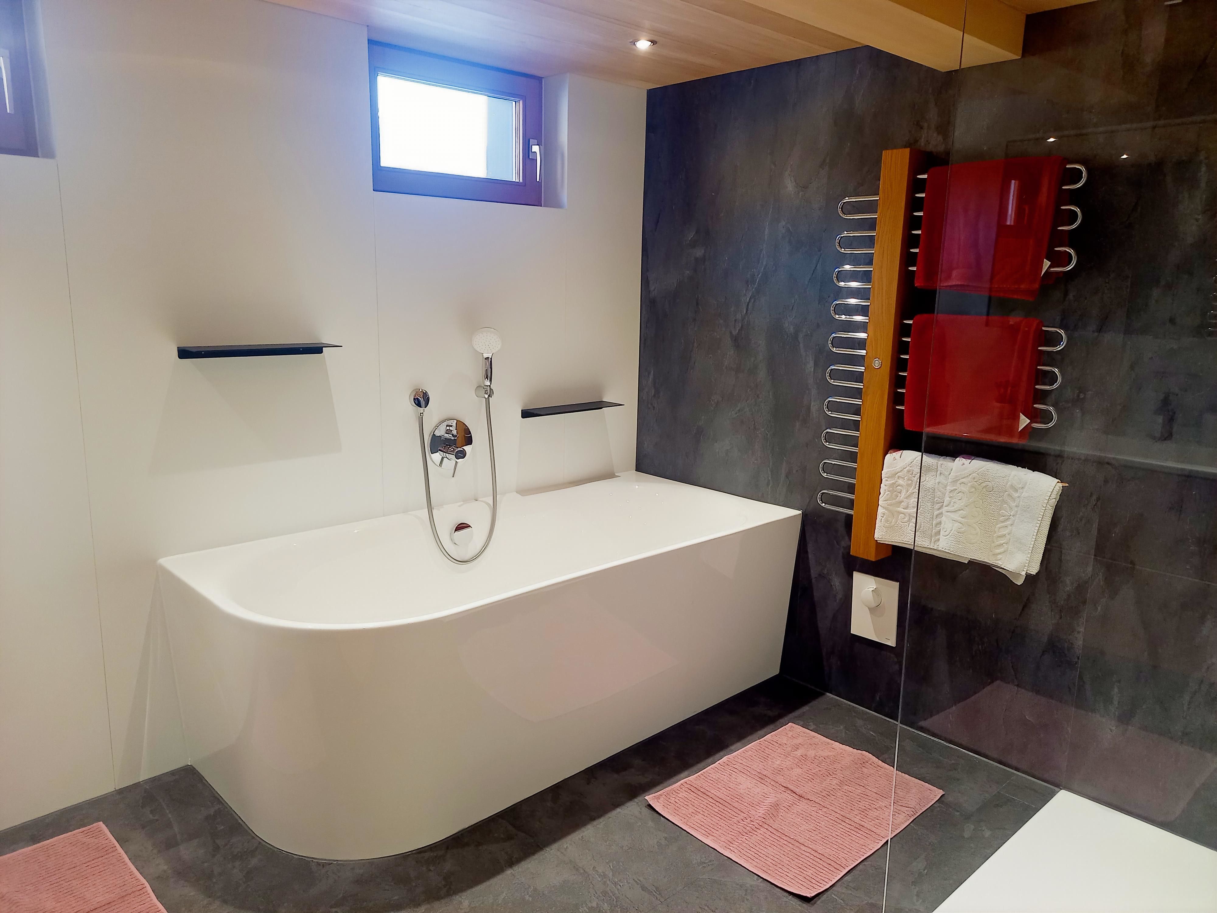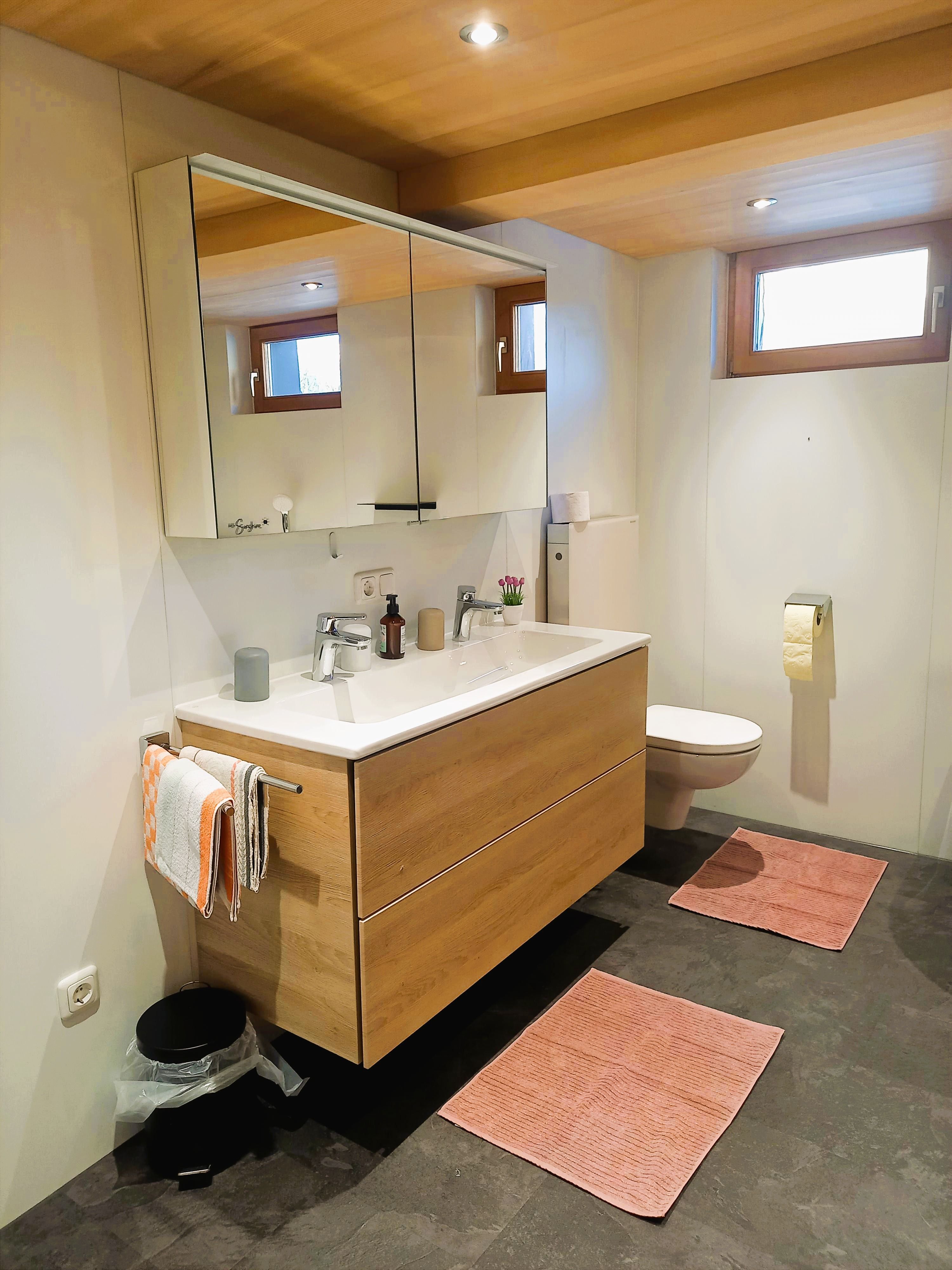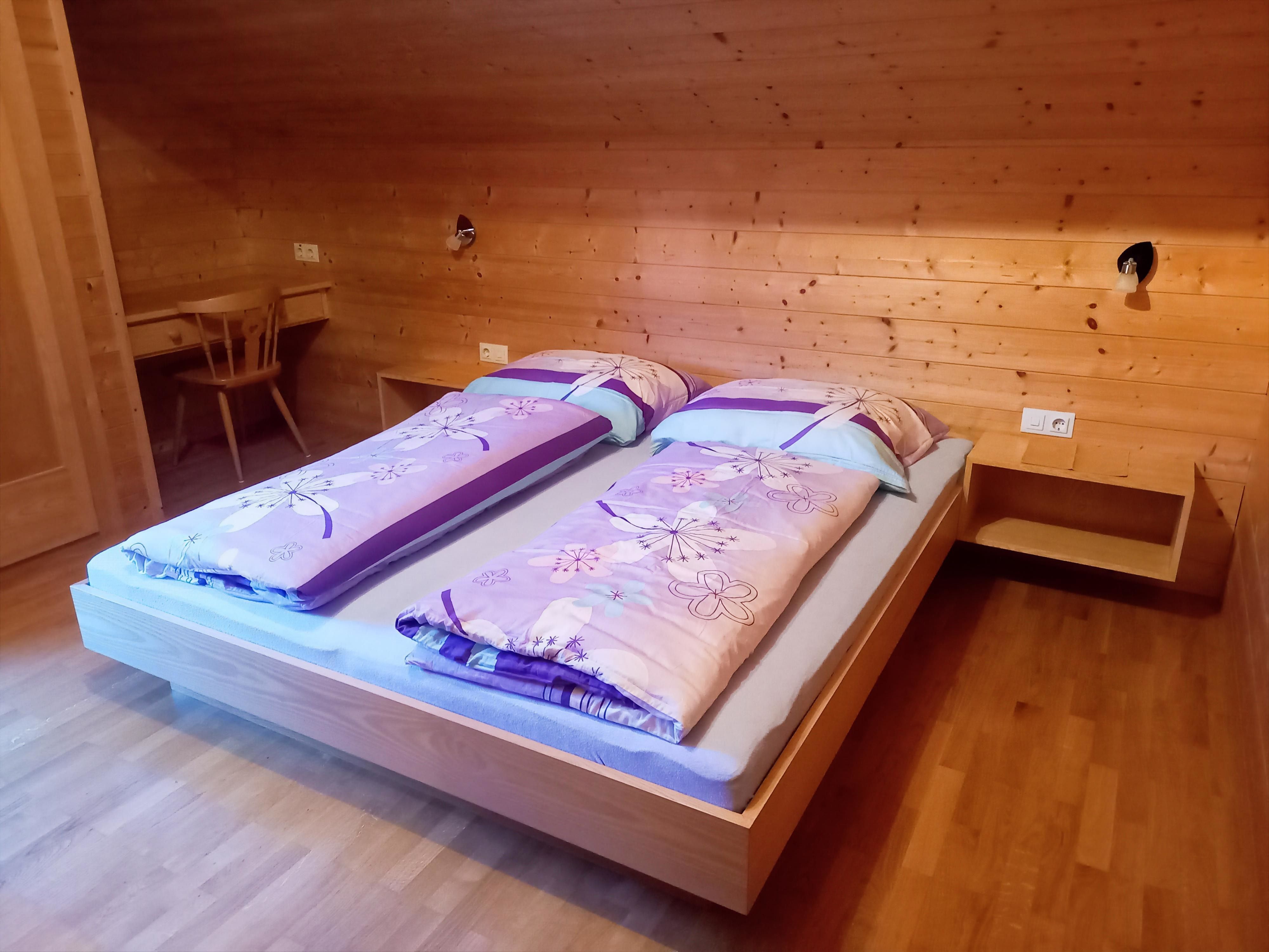 Im Erdgeschoss befindet sich eine komplett ausgestattete Küche, 1 Wohn- u. Esszimmer, 1 separates WC, Abstellraum für Skischuhe etc. und im Obergeschoss 4 Schlafzimmer (2 davon mit Doppelbett und 2 mit Einzelbetten), 1 großes Bad mit Badewanne, Dusche und WC
