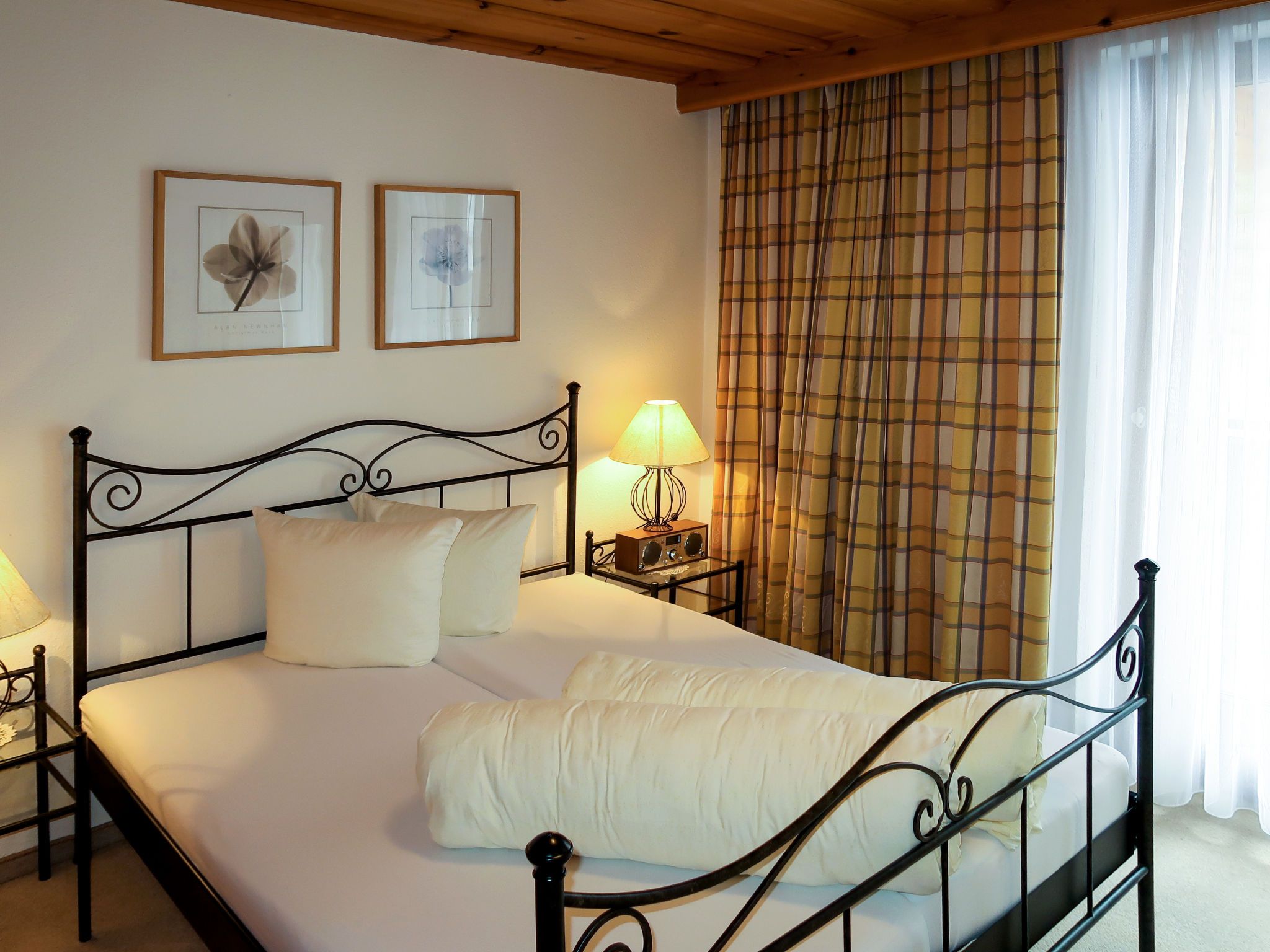 Martina, 6-Zimmer-Wohnung 170 m2 auf 2 Stockwerken, im Obergeschoss, Südwestlage. Rustikal und mit viel Holz eingerichtet: Obergeschoss: 1 Zimmer mit 1 Doppelbett (160 cm), sep. WC und Dusche. Ausgang zum Balkon. 1 Zimmer mit 1 Diwanbett, 1 Doppelbett und Bad/WC. Ausgang zum Balkon. 2. Obergeschoss: Wohn-/Esszimmer mit Essecke und Sat-TV. 1 Zimmer mit 1 Diwanbett, 1 Doppelbett und Bad/WC. Ausgang zum Balkon. 1 Zimmer mit 1 Diwanbett und 1 Doppelbett (160 cm), sep. WC und Dusche. Ausgang zum Balkon. 1 Zimmer mit 1 Diwanbett und 1 Doppelbett (160 cm), Dusche/WC. Ausgang zum Balkon. Küche (4 Kochplatten, Backofen, Geschirrspüler, Toaster, Wasserkocher, Mikrowelle, elektrische Kaffeemaschine) mit kleinem Esstisch. Ausgang zum Balkon. Ölheizung. Teppichboden. 4 Balkone. Abstellkammer. Zur Verfügung: Internet (WLAN, gratis). Bitte beachten: Maximal 1 Haustier/Hund erlaubt. Rauchmelder.