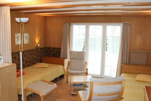 60 m2. Weitere Angaben des Anbieters: 2.5-Zimmerwohnung im Parterre mit Garten/Sitzplatz. An zentraler, ruhiger Lage. 3 Gehminuten von den Bergbahnen entfernt. 2 Schlafzimmer. Moderne, sehr gut ausgestattete Küche. Modernes Badezimmer, Dusche/WC. Telefon, TV/Radio. Skiraum und Parkplatz. Nichtraucherwohnung. Haustiere nur auf Anfrage. Haustiere: CHF 5.- pro Tag.