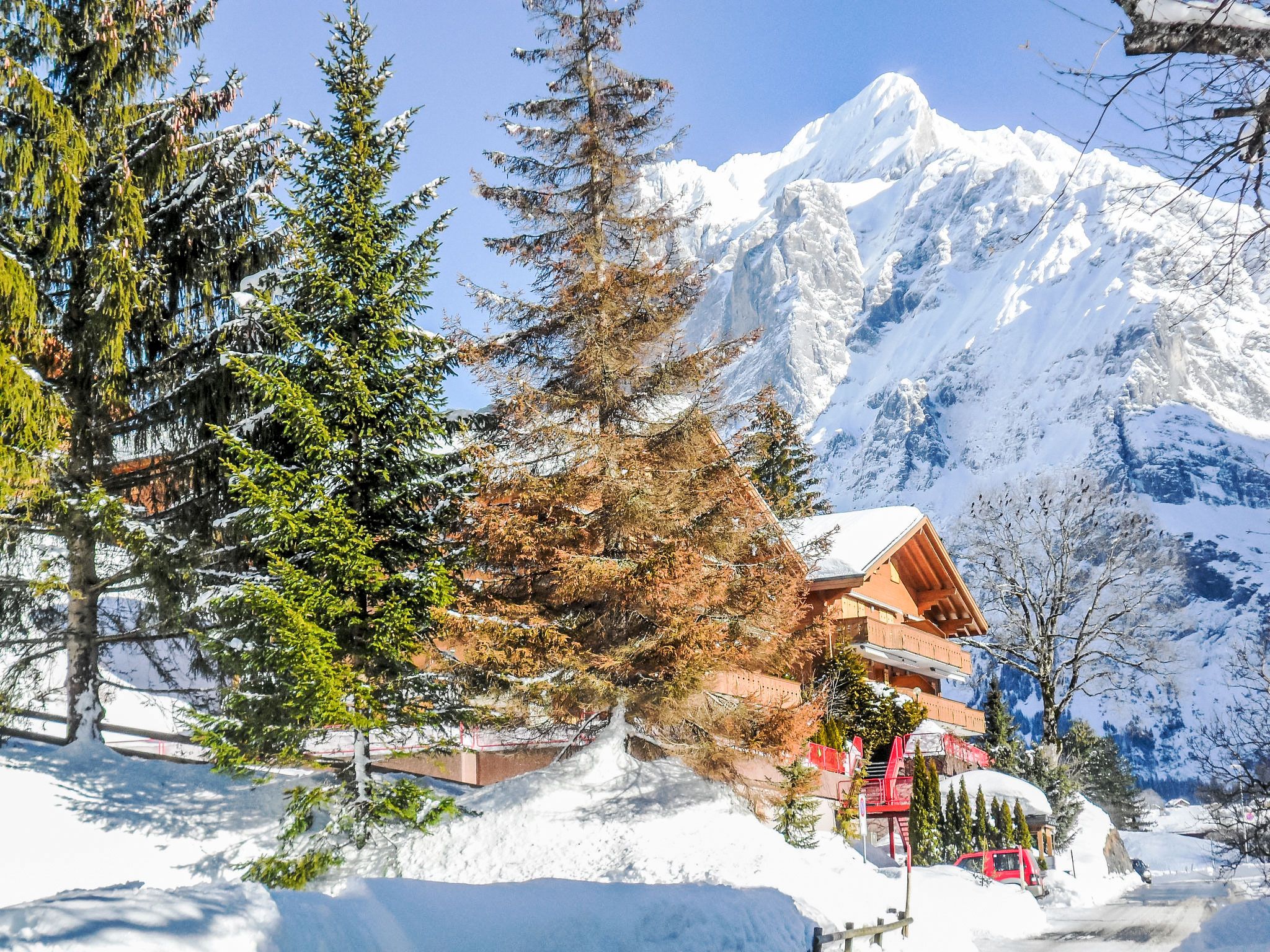 Schönes Mehrfamilienhaus Firstsunne. Im Ortsteil Bodmi, 2.1 km vom Zentrum, sonnige Lage, Richtung Süden. Im Hause: Fahrstuhl, Skiraum, Zentralheizung, Waschmaschine (extra), Wäschetrockner (zur Mitbenutzung, extra). Im Winter bitte Schneeketten mitbringen. Parkplatz, Gemeinschaftsgarage. Einkaufszentrum 2.1 km, Restaurant 100 m, Bar 2.1 km, Bäckerei 2.2 km, Bushaltestelle Bodmi 50 m, Bahnstation Grindelwald Dorf 2.5 km, Freibad 3.5 km, Hallenbad 2.7 km. Golfplatz (9 Loch) 3.5 km, Tennis 3 km, Minigolf 2.5 km, Sportzentrum 2.7 km, Skilift 200 m, Gondelbahn 2.4 km, Skisportanlagen, Skipisten, Skiverleih 100 m, Skibushaltestelle 50 m, Skischule, Kinderskischule 100 m, Langlaufloipe 3 km, Eisfeld 2.7 km, Kinderspielplatz 2.7 km. Bekannte Seen in der Umgebung sind gut erreichbar: Thuner-/Brienzersee 20 km. Bitte beachten: Gratis Skibus. Der gratis Skibus fährt zum Skigebiet kleine Scheidegg, Männlichen und First. Die Schlüsselübergabe findet bei der Agentur Interhome in Grindelwald statt.
