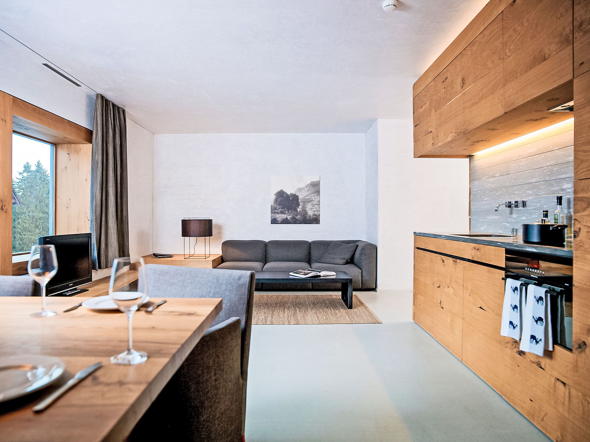 Superior Alpine, 5-Zimmer-Wohnung 110 bis 120 m2. Komfortabel und modern eingerichtet: Wohn-/Esszimmer mit Kabel-TV (Flachbildschirm). 2 Doppelzimmer, jedes Zimmer mit 1 Doppelbett. 2 Zimmer, jedes Zimmer mit 2 Betten. Offene Küche (Backofen, Geschirrspüler, 4 Glaskeramikplatten, Wasserkocher, elektrische Kaffeemaschine, Kapseln für die Kaffeemaschine (Nespresso) extra). Bad, Dusche, 2 sep. WC's. Bodenheizung. Abstellkammer. Schöne Sicht auf die Berge und die Landschaft. Zur Verfügung: Internet (WLAN, gratis). Geeignet für Familien. Maximal 1 Haustier/Hund erlaubt. Bad mit Mini-Spa inkl. Dampfbad augerüstet.