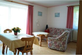Ferienwohnung 50qm in der 1. Etage, Parterre. Ausgestattet mit 1 Schlafraum, Balkon/Terrasse am Zimmer, Bettwäsche vorhanden, Bügelbrett, CD-Player, Doppelbett, Fenster können geöffnet werden, Fernseher, Fön, getrennte Matratzen, Handtücher vorhanden, Kaffee und Teekocher, Kaffeemaschine, Kosmetikspiegel, Küchenzeile, Kühlschrank, Nichtraucherzimmer, Radio, Satelliten TV, Schlafcouch, Sitzgelegenheit, Tisch- und Küchenwäsche vorhanden, Toaster, Trockner, Waschmaschine, Wireless Lan im Zimmer, Wohnküche, Zustellbett Sanitär: WC und Dusche. Machen Sie Urlaub umgeben von Natur und Ruhe. Unser familiär geführtes Haus liegt am Ortsrand in landschaftlich schöner, ruhiger Lage und Waldnähe. Unser Haus ist direkt am Wanderweg gelegen und den Radweg erreichen Sie in ca. 2 Minuten mit dem Fahrrad. Die Rottal Terme und der Golfpark Bella Vista sind ca. 6 km entfernt.