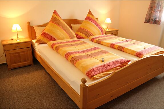 Wählen Sie zwischen unseren komplett eingerichteten und großzügigen Ferienwohnungen für 2 oder für bis zu 4 Personen (Schlafzimmer, Wohn-/Essbereich mit komplett ausgestatteter Küche, DU/WC, Balkon/Terrasse), unseren Einzelzimmern oder unserem Apartment für 1 Person. Unsere Zimmer/Wohnungen sind alle im Landhausstil eingerichtet. Die Betten sind teilweise erhöht. Das Apartment und ein Teil der Wohnungen sind schwellenfrei. Unsere Liegewiese lädt zum Entspannen ein.
