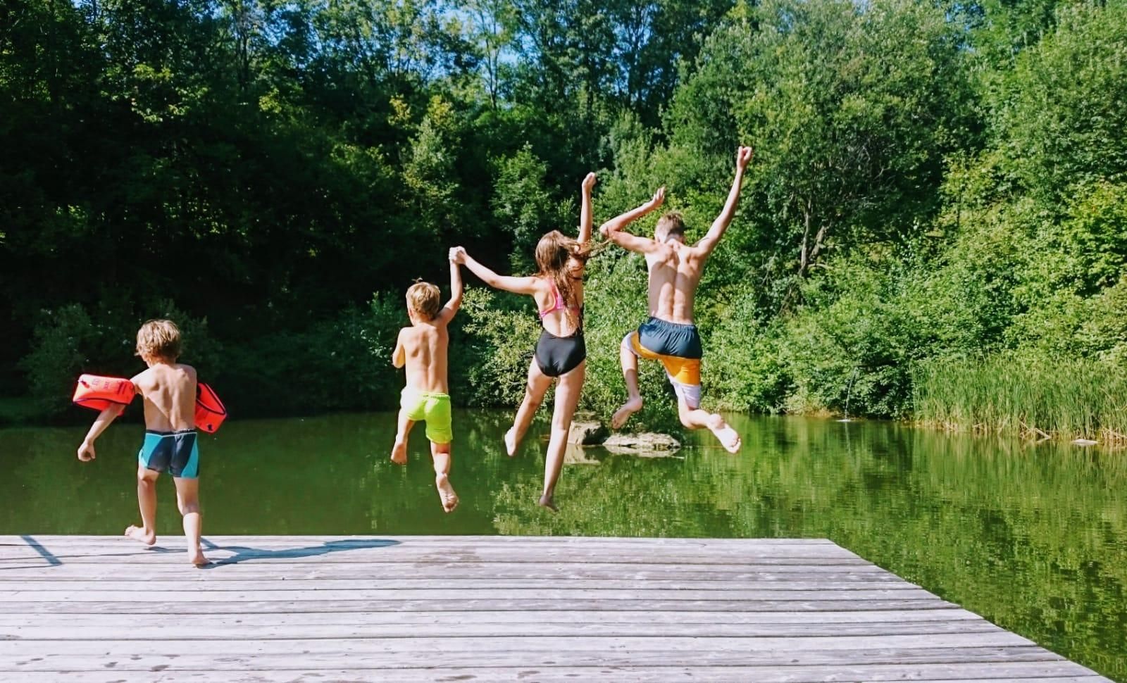 2 Holzblockhäuser neben privatem Badeteich für bis zu 8 Personen.