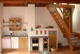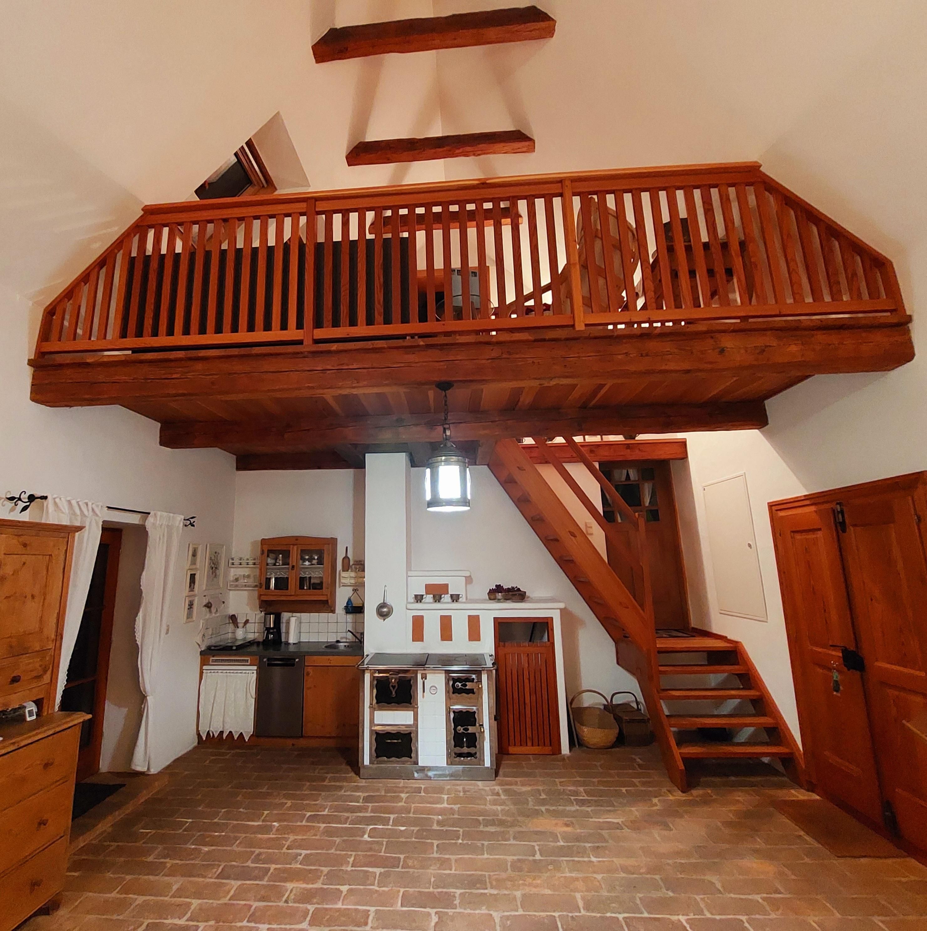 Revitalisiertes Kellerstöckl für einen Urlaub zu Zweit: Rund 98 Quadratmeter Wohnfläche auf vier Etagen. Gemütliche Stube mit Lehmziegelboden, vollausgestattete Küche mit Holzofen, romantisches Himmelbett, heimelige Galerie, großzügiges Badezimmer mit Eckbadewanne und WC, ruhige und schattige Terrassen uvm.