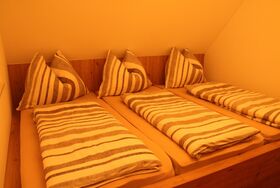Unser Ferienhaus bietet Platz für max. 7 Personen. In dem ca. 80m² großen Häuschen befinden sich im Obergeschoss 2 Zimmer, wovon eines ein Matratzenlager ist, ein großes Vorhaus mit zusätzlichem Sofa mit Schlaffunktion für max. 2 Personen.