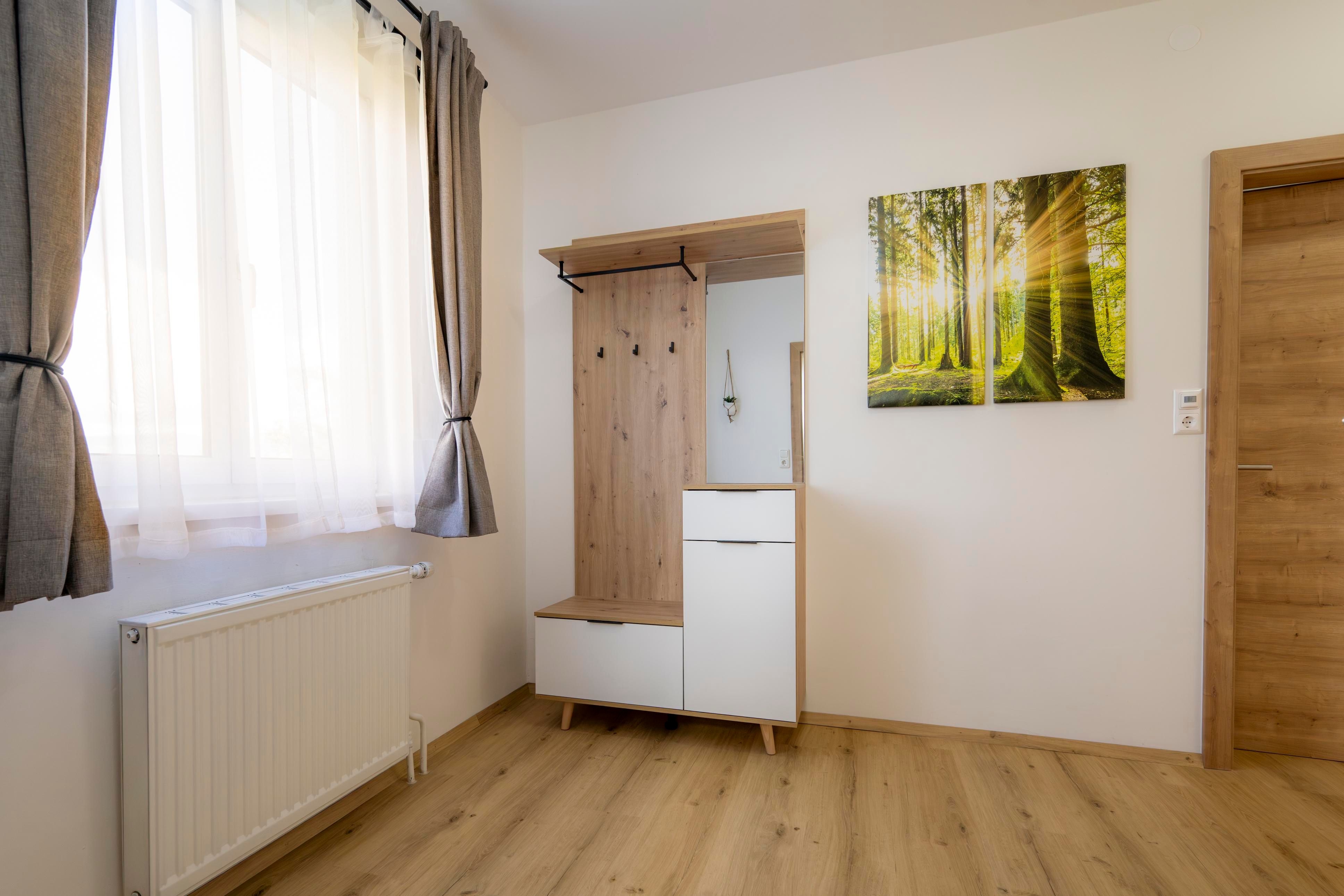 Diese Ferienwohnung (ca.45m2) für 2 Personen verfügt über ein Schlafzimmer mit Couch, Badezimmer,Wc, Küche, Esszimmer und einer Terasse mit herrlichen Blick übers Pöllauer Tal.