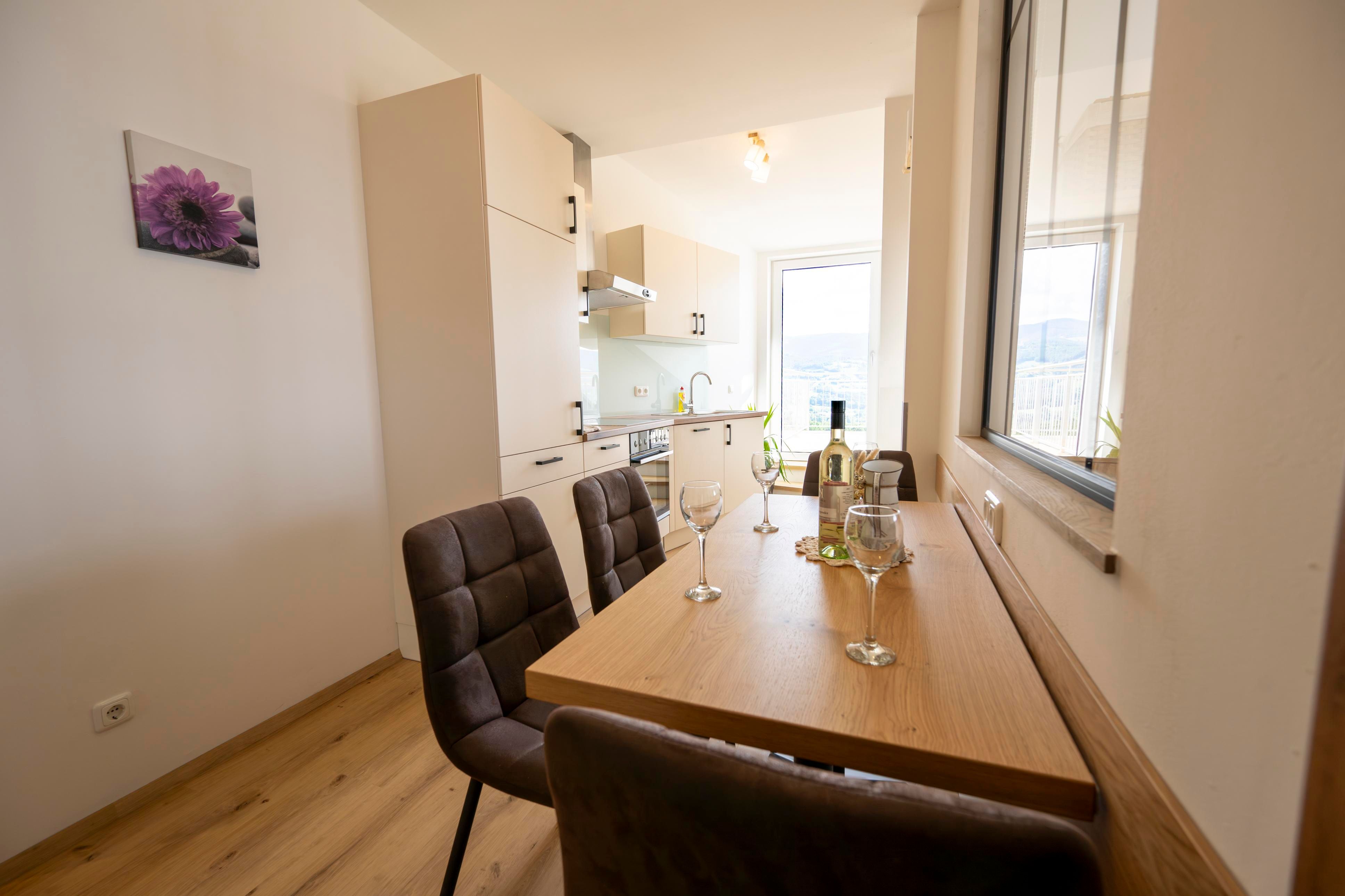 Die Ferienwohnung (ca.55m2) befindet sich im 1. Stock und verfügt über 2 Schlafzimmer, ein Badezimmer, Wc, Küche mit Essbereich und einen Balkon und Terrasse mit herrlichen Blick übers Pöllauer Tal.