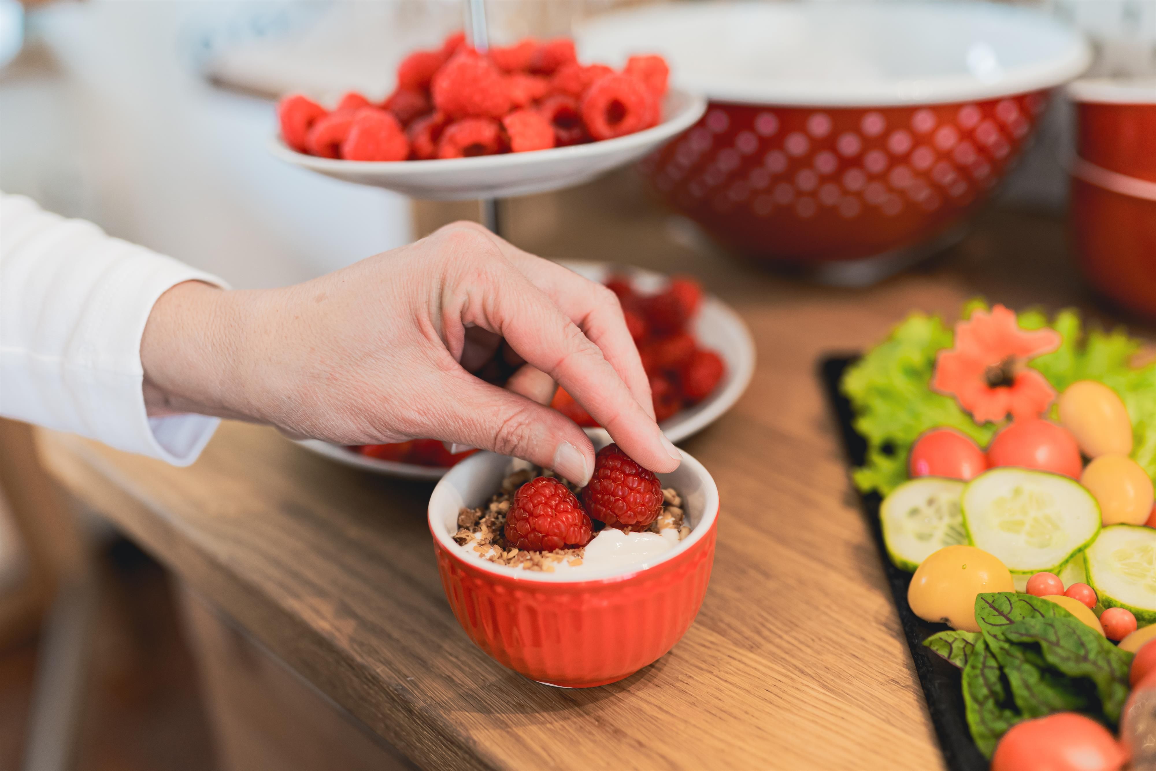 Das Himbeernest ist ein kleiner, feiner Landhof mit fünf Gästezimmern in sonniger Panoramalage über dem idyllischen Markt Anger. Der Tag beginnt mit einem Frühstück, das selbst Morgenmuffel strahlen lässt: es wird im großzügigen Frühstücksraum mit Blick zum Garten serviert. Mindestens 8 verschieden Sorten hausgemachte Marmelade, Aufstriche und Kuchen, Obst und Gemüse frisch vom Garten, Natursäfte aus dem Apfeldorf Puch, Müsli und Joghurt vom Milchbauernhof, knuspriges Gebäck frisch von der Bäckerei im Ort, Schinken, Wurst und Käse und Eier von unseren eigenen Hühnern lassen das Herz höherschlagen. Und das Beste? Es gibt keine Massenabfertigung, mit nur 5 Zimmern gibt es viel Platz für Gemütlichkeit und besondere Aufmerksamkeit für jeden meiner Gäste.