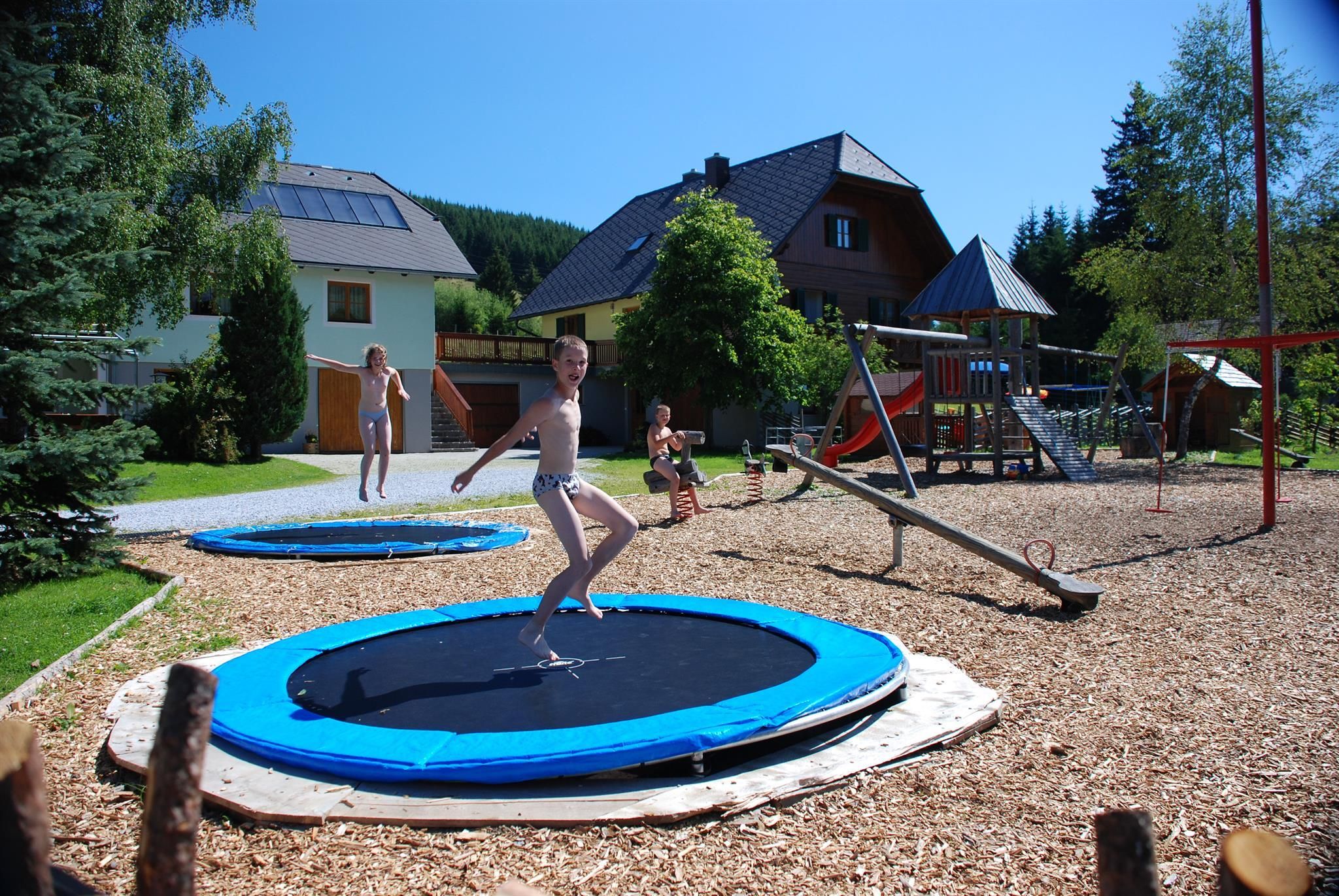 Die gemütliche Sonnenterrasse und ein großer Kinderspielplatz sind ideal für die schönen Sonnenstunden im Almenland.