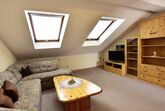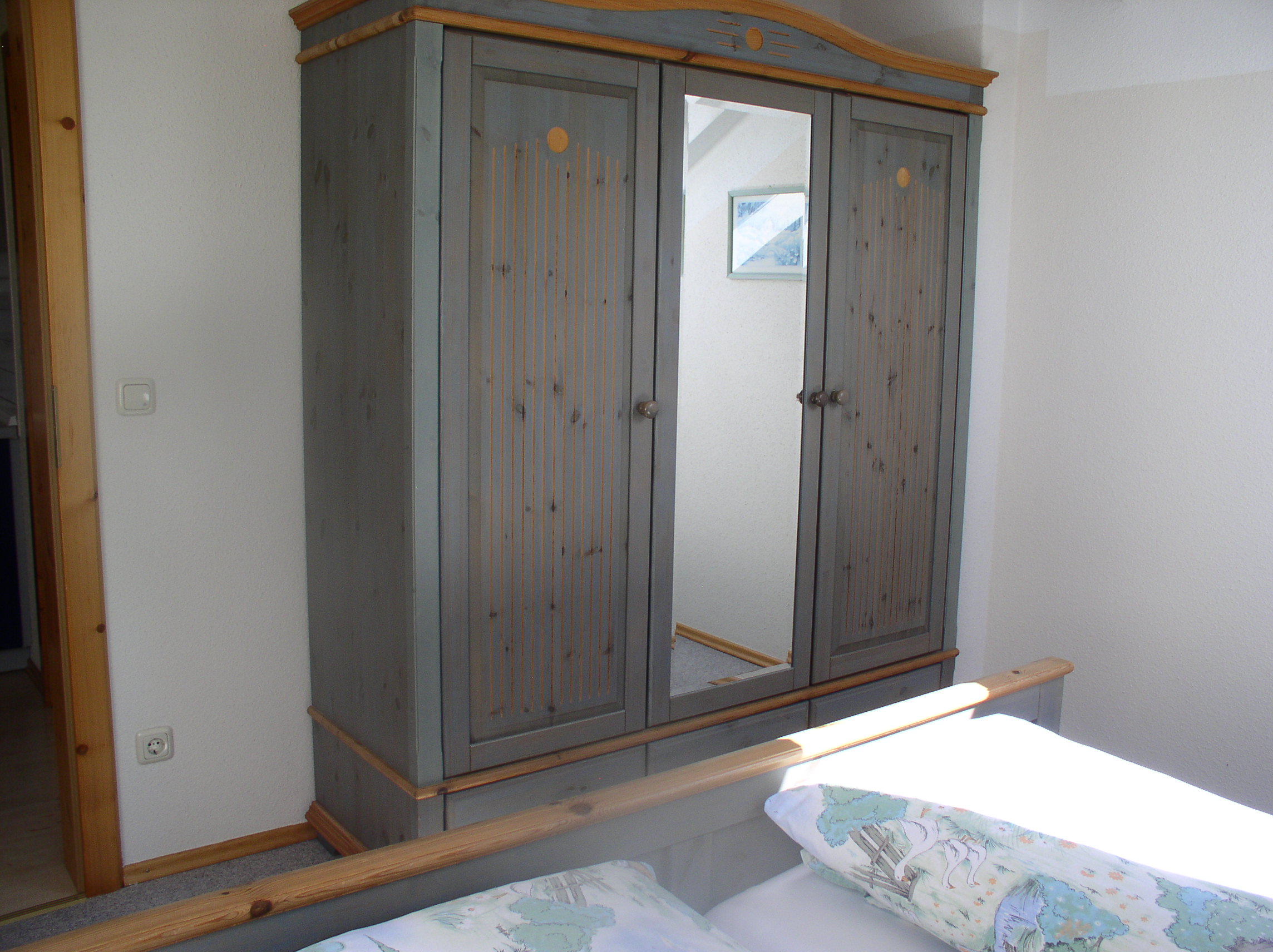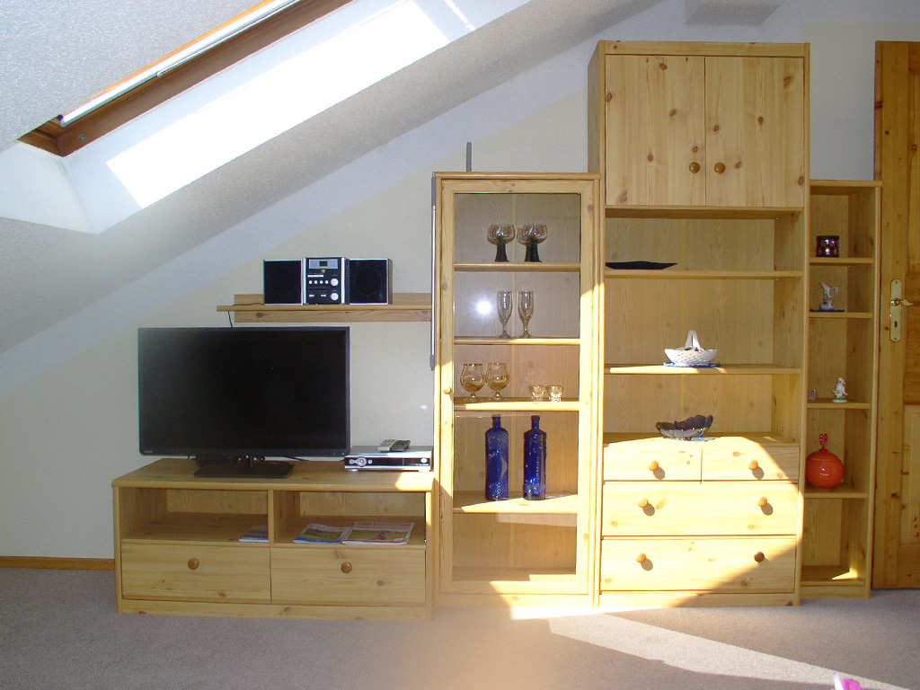 Ferienwohnung 45 qm im Dachgeschoss, mit einem Badezimmer ein Schlafzimmer mit Doppelbett, Bettwäsche vorhanden, Fenster können geöffnet werden. Badezimmer mit Fenster mit WC und Dusche und Badewanne, Kosmetikspiegel und Fön, Handtücher vorhanden. Kochmische/Kochgelegenheit mit Kaffee- und Teekocher, Kühlschrank, Mikrowelle, Tisch- und Küchenwäsche vorhanden und Toaster. Wohnzimmer mit, Schlafcouch, Sitzgelegenheit, Satelliten TV, Radio und WLAN. Nichtraucherzimmer. Fahrräder stehen kostenlos zur Verfügung. Der schöne Garten mit Pavillon und Grillplatz lädt auf jeden Fall zum Entspannen ein. Private Parkplätze stehen kostenfrei an der Unterkunft zur Verfügung. Wir würden uns freuen Sie bei uns begrüßen zu dürfen.