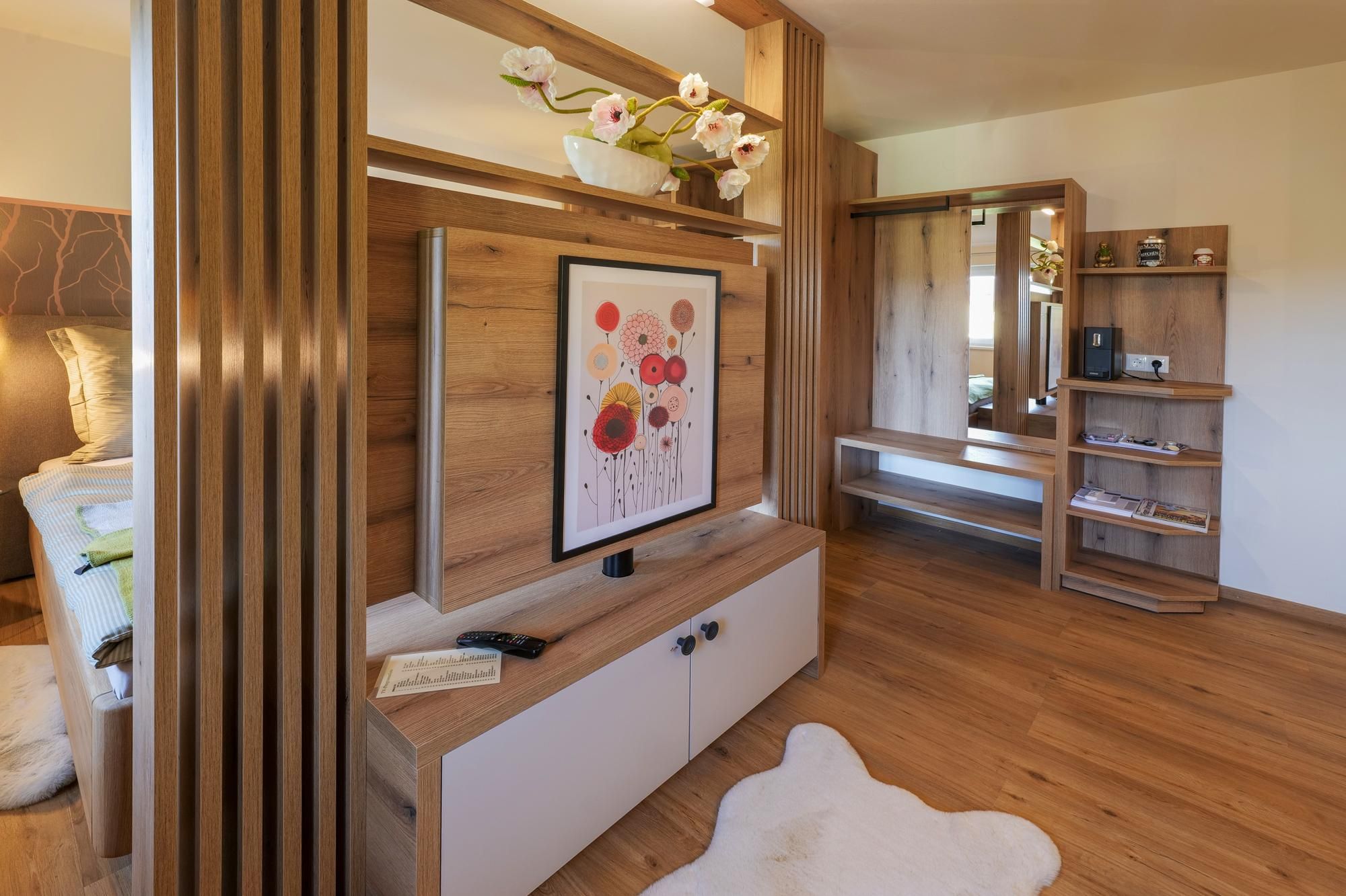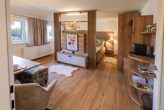 Das Appartement verfügt über einen gemeinsamen Wohn-, Ess- und Schlafbereich mit insgesamt 28m² Wohnfläche und bietet somit Platz für 2 Personen.