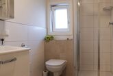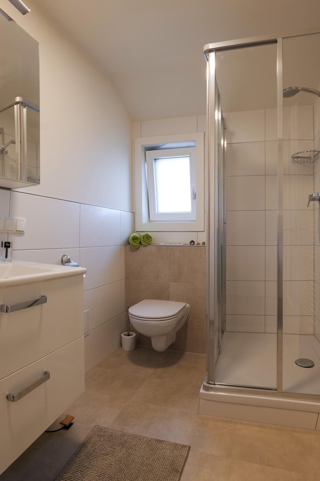 Das Badezimmer mit Dusche und WC ist als separater Raum vom Wohnbereich abgegrenzt.