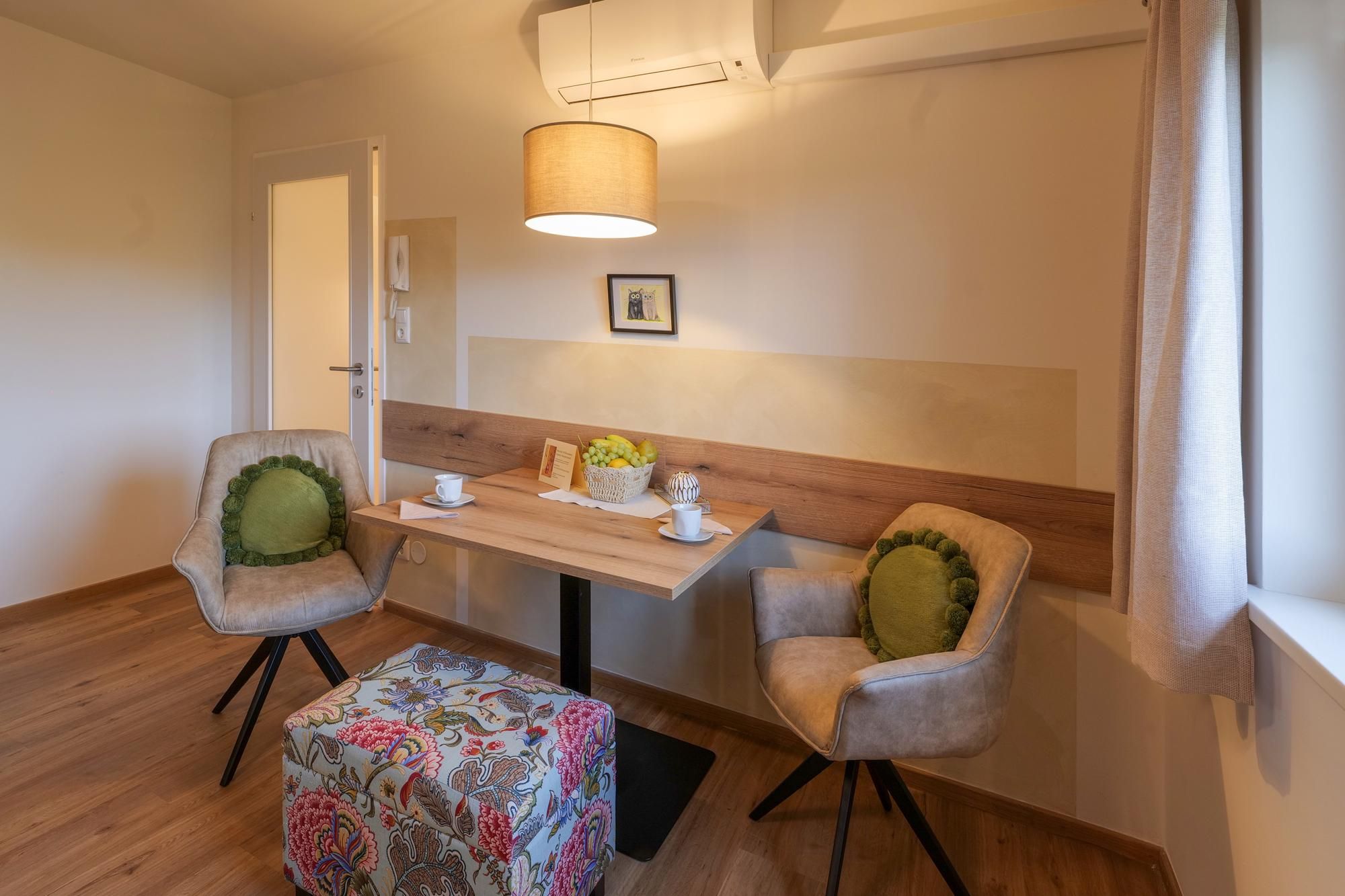 Im Jahr 2023 wurden die Appartements komplett neu saniert und hochwertig eingerichtet. Die Unterkünfte bieten nun Platz für 1 bis 4 Personen. Die hellen, gemütlich und stilvoll eingerichteten Räume laden zum Verweilen und Wohlfühlen ein. Eine Sitzgarnitur im ruhigen, gepflegten Außenbereich kann von den Gästen genutzt werden.