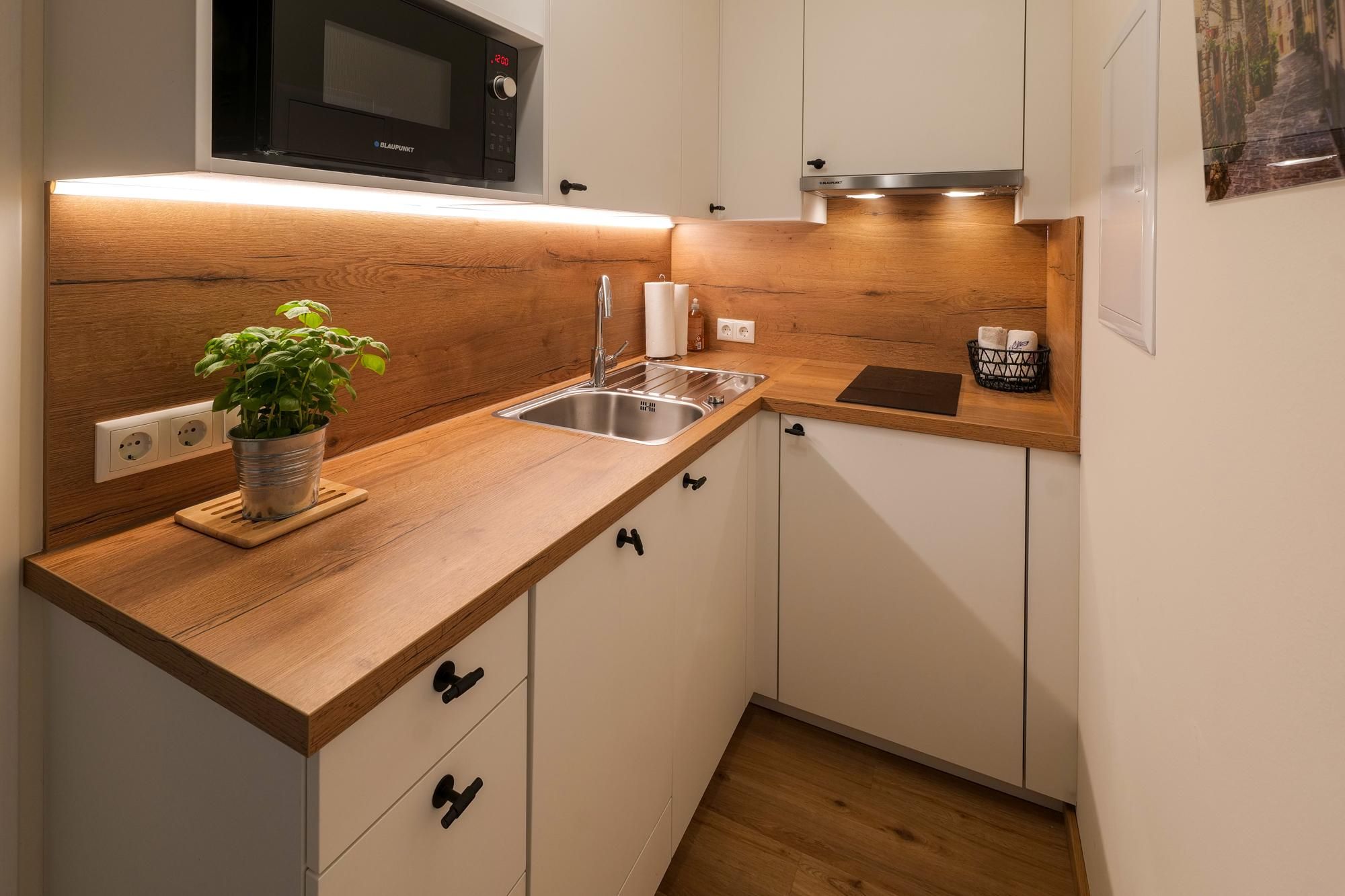 Eine vollausgestattete Küchennische ist im Appartement integriert.