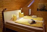 Unser Appartement Sonnenuntergang ist sehr geräumig (90 m2) und auf zwei Etagen aufgeteilt. Im Erdgeschoß befindet sich der Eingangsbereich, eine kleine Toilette, Küche (mit Gefrieschrank und Geschirrspüler), Essbereich und ein durch einen Vorhang abgetrennter Schlafbereich (Doppelbett). Vom Balkon mit hat man einen schönen Blick auf den See. Im 1. Stock befindet sich das Badezimmer mit Waschmaschine, Badewanne (auch als Dusche benutzbar) und WC, sowie ein weiteres geräumiges Schlafzimmer (Doppelbett) mit Umkleidebereich. Seit heuer gibt es im Eingangsbereich noch einen privaten Sitzplatz mit Grillmöglichkeit. Die Inneneinrichtung unserer Ferienwohnung Sonnenuntergang zeichnet sich durch den massiven Holzbau vor allem durch das Hüttenfeeling aus.