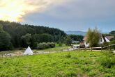 Für Wellness steht die Holzofensauna neben dem Haus bereit. Ein besonderes Highlight ist auch das große Tipi mit Sandspielplatz, das Groß und Klein zum Nächtigen einlädt.