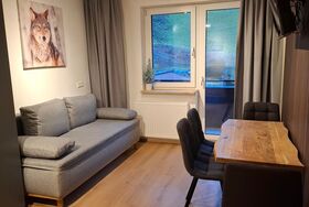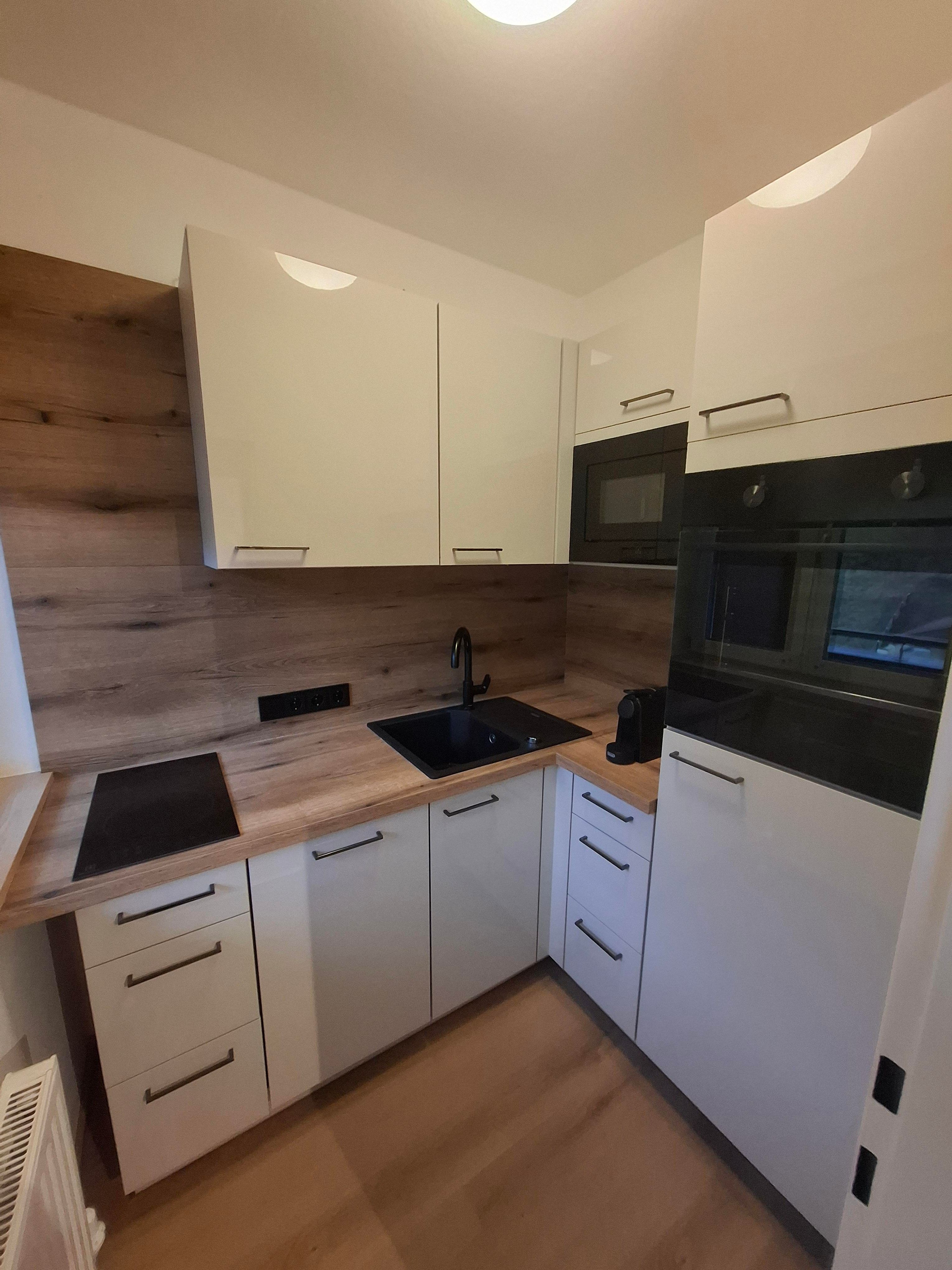 Die Küche ist vollständig eingerichtet und ideal für die Zubereitung Ihrer Mahlzeiten, während die bequeme Schlafcouch zusätzlichen Komfort für weitere Gäste bietet.