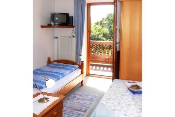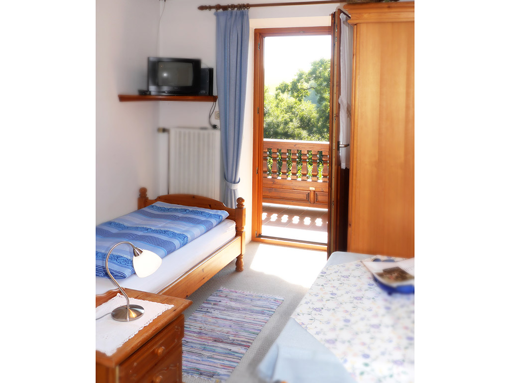 Das helle und geräumige Einzelzimmer verfügt über ein Einzelbett. Auf den gemütlichen massiven Kieferholzmöbeln mit TV können Sie entspannte Abende verbringen. Das Badezimmer mit Dusche, WC und Fön rundet das Gesamtbild ab. Vor allem im Sommer können Sie sich auf dem eigenen Balkon entspannen. Selbstverständlich können Sie auch die Grillmöglichkeiten in unserem Garten nutzen.