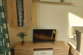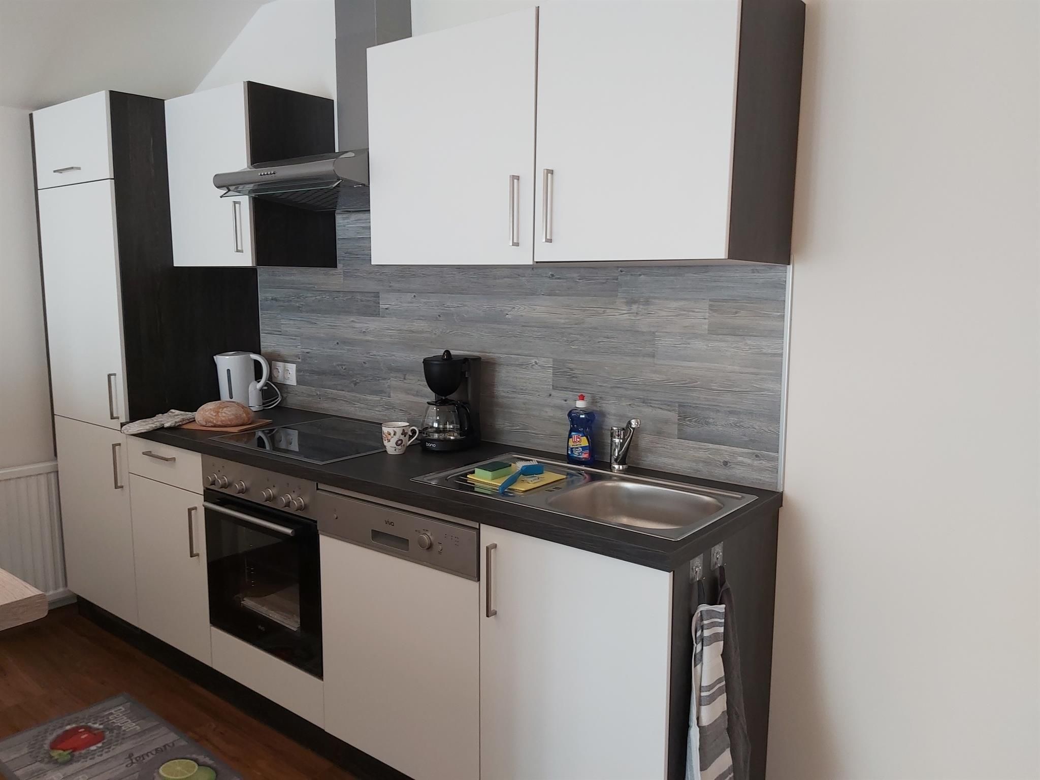 Dieses Appartement besteht aus einem Schlafzimmer mit einem Boxspring-Bett von 160x200 cm, einem Badezimme rmit Badewanne oder Dusche, einem Wohnzimmer mit Essbereich, einem bequemen Schalfsofa, Sat-TV, kostenlosem W-LAN und einer voll ausgestatteten Küche mit Geschirrspüler, Backofen, Ceranfeld und Kühlschrank.