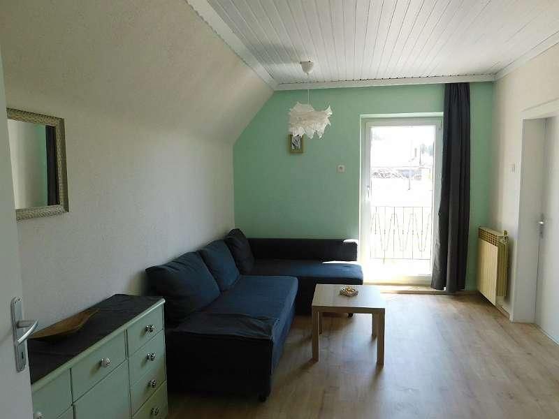 • Wohnbereich mit Schlafcouch (140 x 200 cm) und Schreibtisch, sowie Zugang auf den Balkon