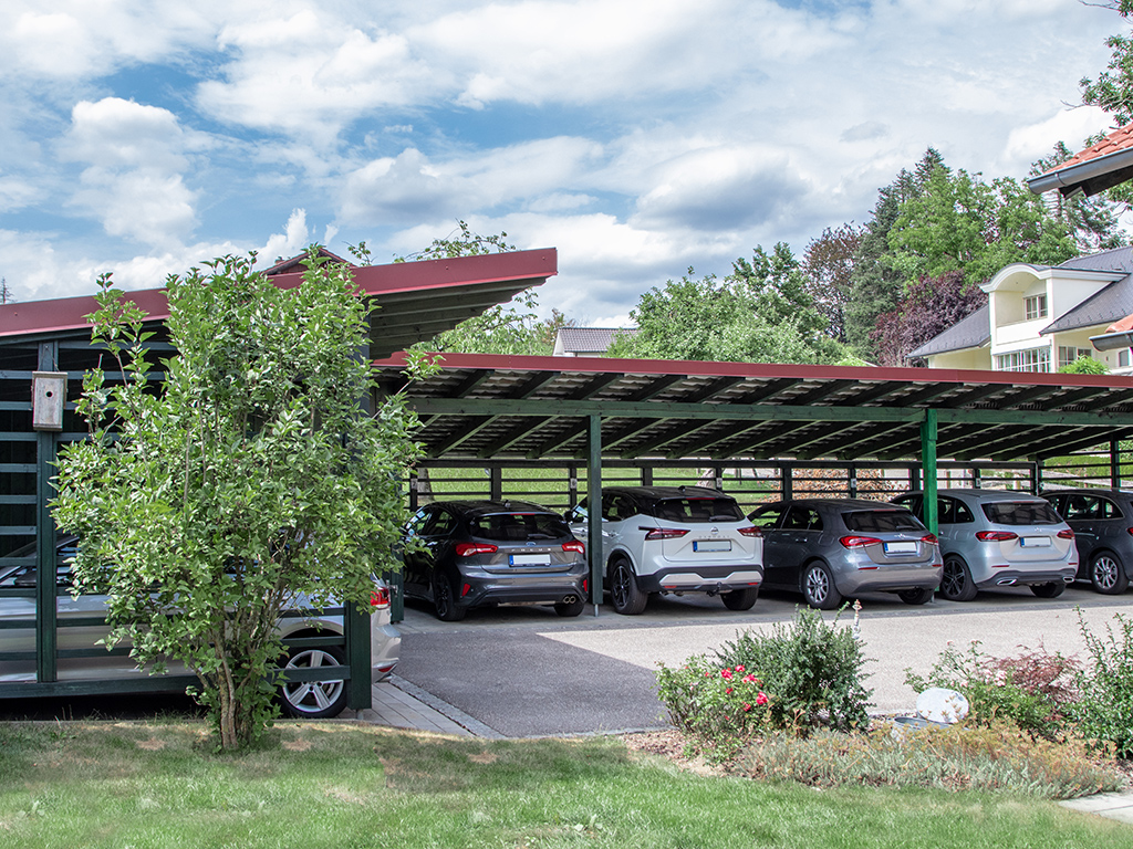 Großer Südbalkon, in der Dusche niedriger Einstieg und Fußbodenheizung im Bad, eigener Carport, abschließbarer Fahrradschuppen, E-Ladestationen für Auto und Fahrräder