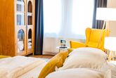 Zurücklehnen, erholen, genießen. Die Studios im modernen Landhausstil (ca.70m²) bieten viel Platz für bis zu fünf Personen. Sie bestehen aus je einem Schlafzimmer, einem Wohn-Schlaf-Bereich und einem weiteren Einzelzimmer. Der Wohnbereich lockt mit einer Essgruppe inkl. kleiner Kochmöglichkeit und einer gemütlichen Sofaecke. Hier können Sie im Ohrensessel die Zeit vergessen und ganz entspannt den Urlaub genießen. Kostenloses WLAN und ein Full-HD TV mit Streamingdienst (Netflix) ergänzen das Angebot dieser Kategorie.