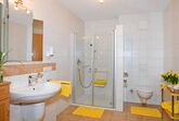 Südbalkon, auf Wunsch mit Mikrowelle, niedriger Duscheinstieg und Fußbodenheizung im großen Bad, eigener Carport, abschließbarer Fahrradschuppen, E-Ladestationen für Auto und Fahrräder, Drittes Bett im Schlafzimmer