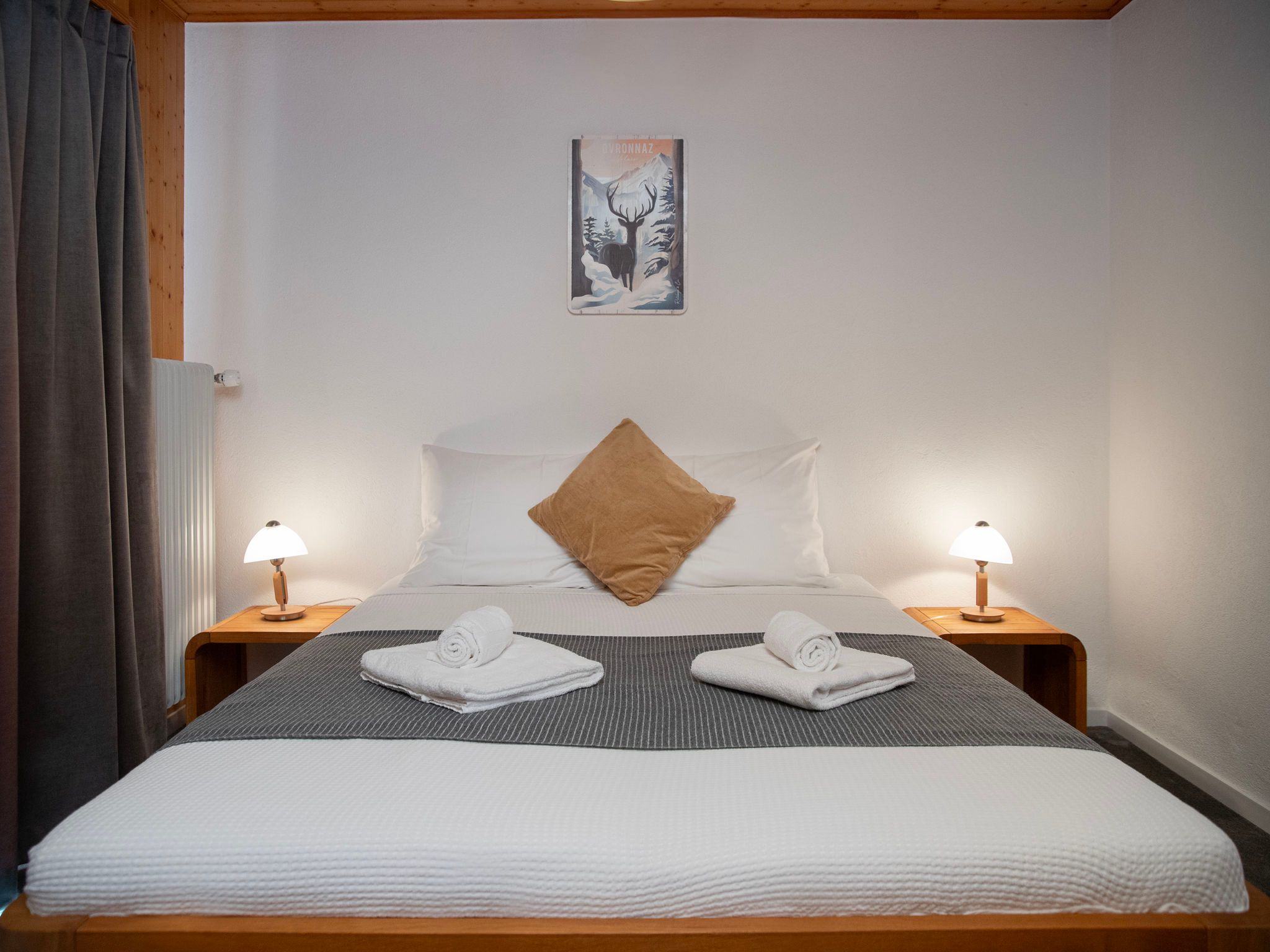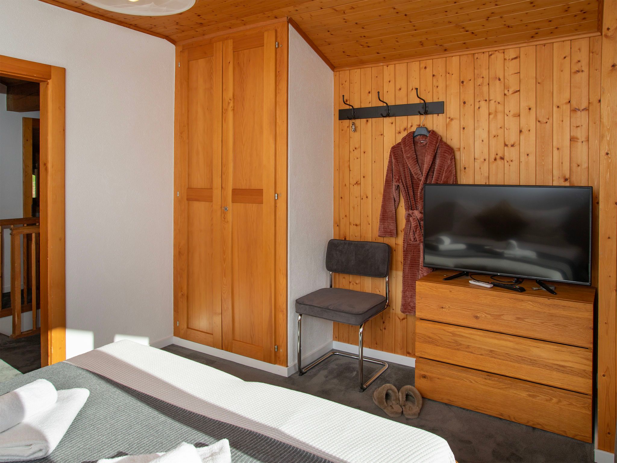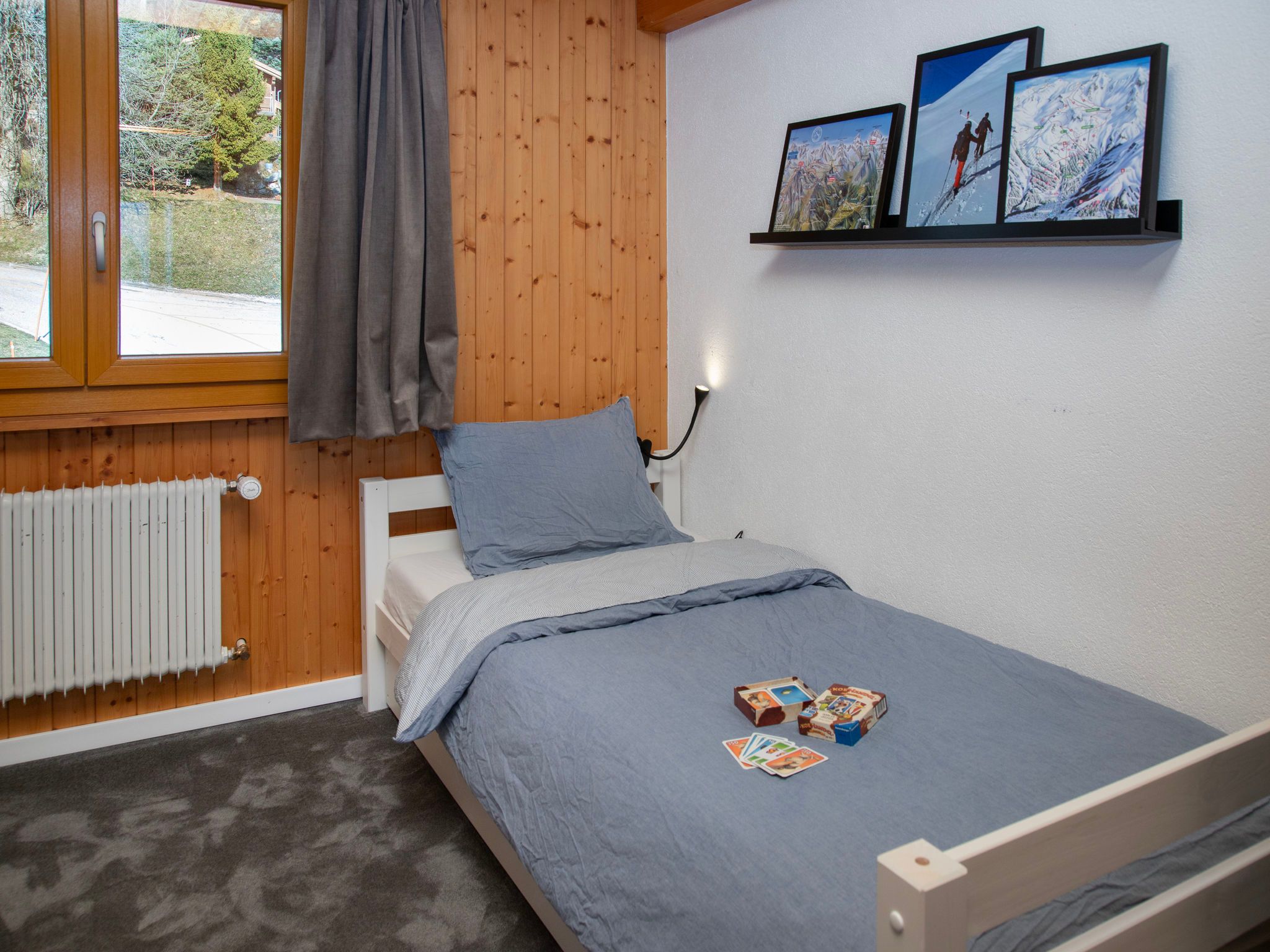Plein Soleil B 19, 4-Zimmer-Wohnung 90 m2 im 3. Stock, Südostlage. Geräumig, abgeschrägt, renoviert im Jahre 2024, komfortabel und schön eingerichtet: Eingang. Grosses Wohn-/Esszimmer mit Schwedenofen und Kabel-TV. Ausgang zum Balkon, Richtung Südosten. Küche (4 Induktionskochplatten, Wasserkocher, elektrische Kaffeemaschine, Kapseln für die Kaffeemaschine (nespresso) extra, Racletteofen, Fondue Set (Käse)). Ausgang zum Balkon, Richtung Nordosten. Bad/WC. Obergeschoss: 1 grosses Zimmer mit 1 Doppelbett (2 x 90 cm, Länge 200 cm). Ausgang zum Balkon, Richtung Südosten. 1 Zimmer mit 1 Bett (90 cm, Länge 200 cm), 1 x 1 Etagenbetten (90 cm, Länge 200 cm). 1 Zimmer mit 1 franz. Bett (1 x 140 cm, Länge 200 cm). Kleine Galerie mit Kabel-TV. Dusche/WC. Zur Verfügung: Internet (WLAN, gratis). Bitte beachten: Nichtraucher-Unterkunft.