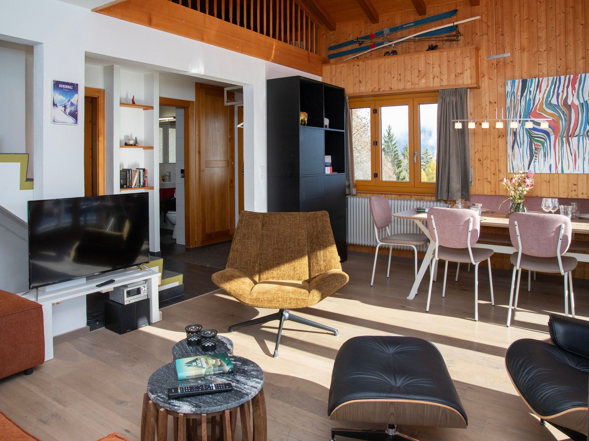 Appartementhaus Plein Soleil B, auf 3 Stockwerken. Im Ortsteil Chevalley, 1.2 km vom Zentrum von d'Ovronnaz, ruhige, sonnige Lage, Richtung Südwesten. Im Hause: Skiraum, Waschmaschine (zur Mitbenutzung, extra), Trockenraum. Zufahrt bis 30 m zum Haus. Im Winter bitte Schneeketten mitbringen. Parkplatz Nr. 19 (beschränkte Anzahl) beim Haus. Einkaufsgeschäft 1.2 km, Restaurant 260 m, Bushaltestelle Plein Soleil 80 m, Thermalbad 300 m. Skipisten 1.5 km, Skibushaltestelle 270 m. Bitte beachten: kein Fahrstuhl vorhanden. Babyausstattung auf Anfrage (extra). Gratis Skibus.