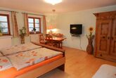 Das Wampendobler Paradies - für uns ein Gefühl und für Sie ein romantischer Ort, um in der Ruhe Kraft zu tanken. Unser Haus zu beschreiben ist umfangreich, da unser ganzes Leben auf den Hof ausgerichtet ist. Der Einödhof liegt in der Mitte unserer 120.000 qm biologisch bewirtschafteten Felder und Wiesen. Es ist einer der wenigen Arche-Höfe mit GEH Zertifizierung. Das heißt wir halten vom Aussterben bedrohte alte Nutztiere. Aber nicht nur Nutztiere, sondern auch Katzen, Lamas, Mixed Hühner/Hähne und Deutsche-Doggen. Da es ein für heutige Verhältnisse sehr kleiner Bauernhof ist, benötigen wir mehrere Standbeine um auf und von unserer Scholle zu leben. Wir haben die Bereiche Bauernhof, Wellness, Übernachtungen und Filzen. Für Sie als Gast ist erst einmal die Übernachtung am wichtigsten. Zwei Wohnungen und drei Zimmer stehen Ihnen hierfür zur Verfügung. 5 verschiedene Einheiten, individuell und sehr unterschiedlich eingerichtet. Die kleine bäuerlich eingerichtete Ferienwohnung mit ca. 55 qm spiegelt den Ursprung unseres Hofes aus dem Jahr 1640 wieder. Die große Ferienwohnung ist modern aber dennoch stimmig im Haus. Beide liegen im EG. Die Zimmer (Emporen) liegen im ersten Stock. Von 17 über 25 bis hin zu 36 qm geben sie dem Gast genug Platz um sich wohl zu fühlen. Neben den Zimmern kann man auch unseren Meditationsraum oder den Seminar/Filzraum buchen. Dies machen vorallem kleine Gruppen bis 12 Leute, die z.B. ein Teambildungsseminar veranstalten oder einen Yogakurs machen. Da wir hauptsächlich Doppelbetten haben, so sollten sich die Gruppenmitglieder gut kennen.