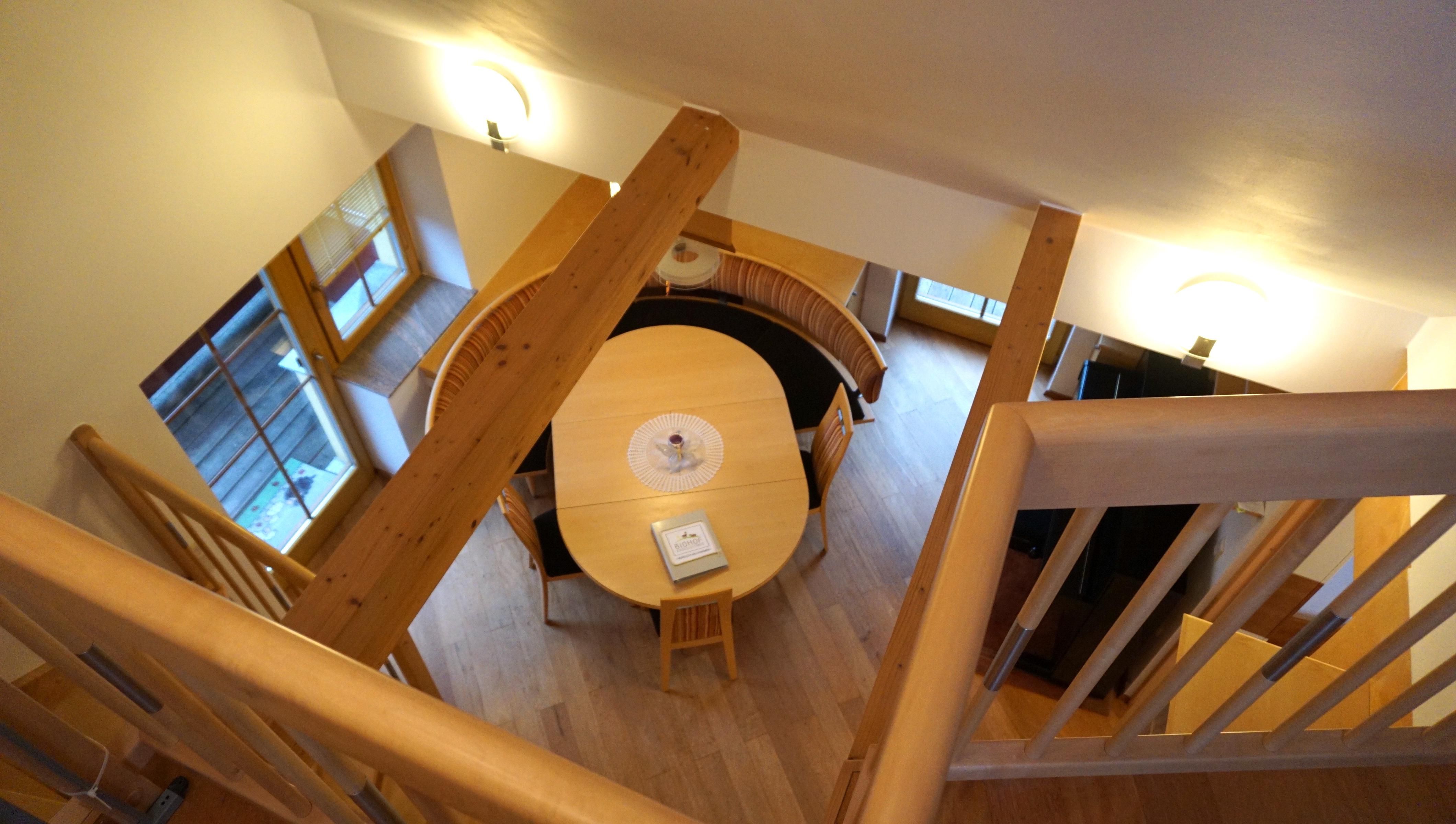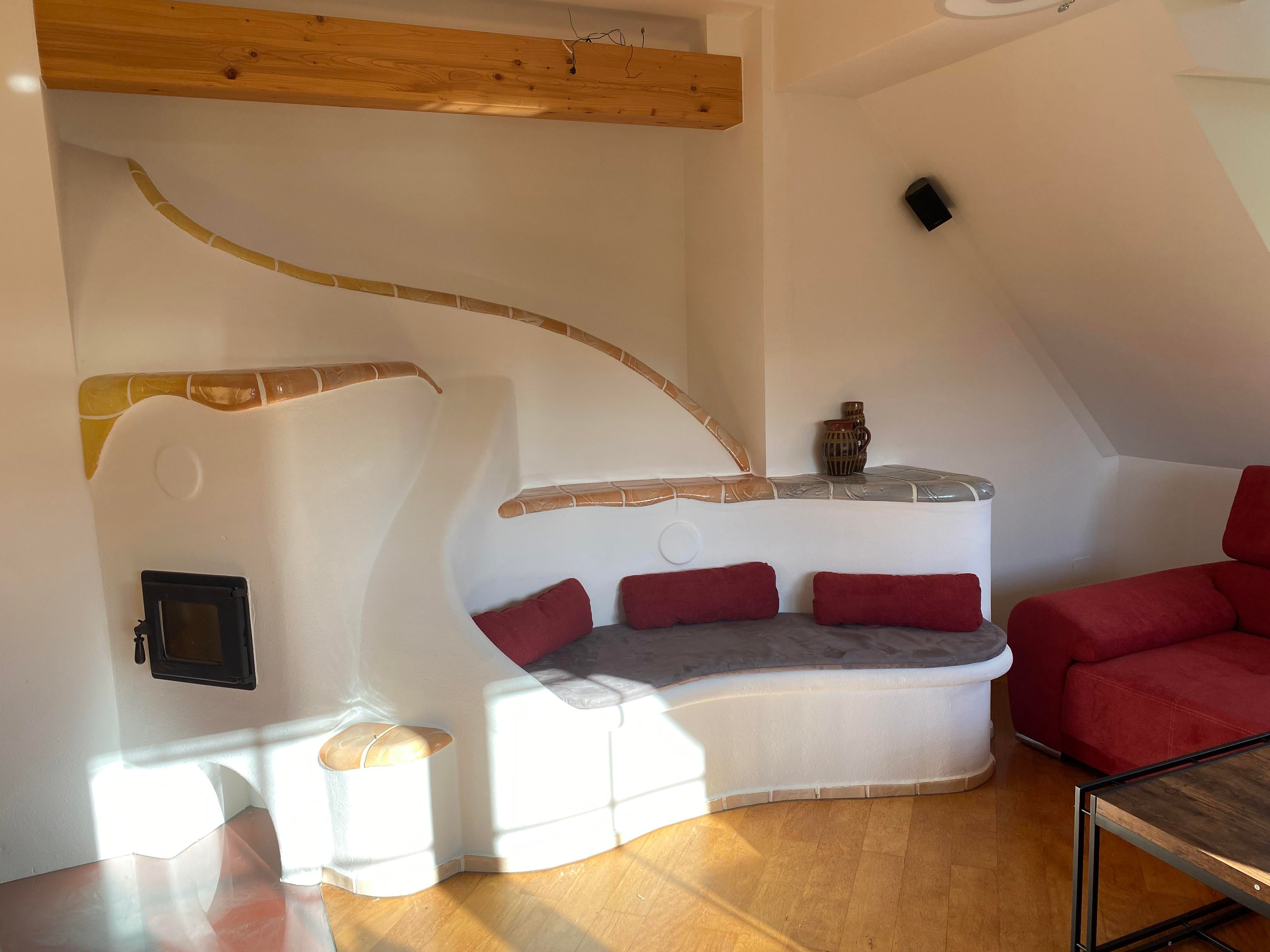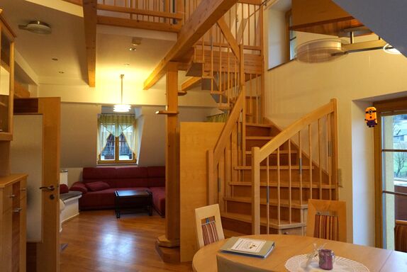 Die Ferienwohnung befindet sich im 1. und 2. Stockwerk unseres Hauses, ist komplett saniert und mit Boden- Wandheizung und Kachelofen ausgestattet.