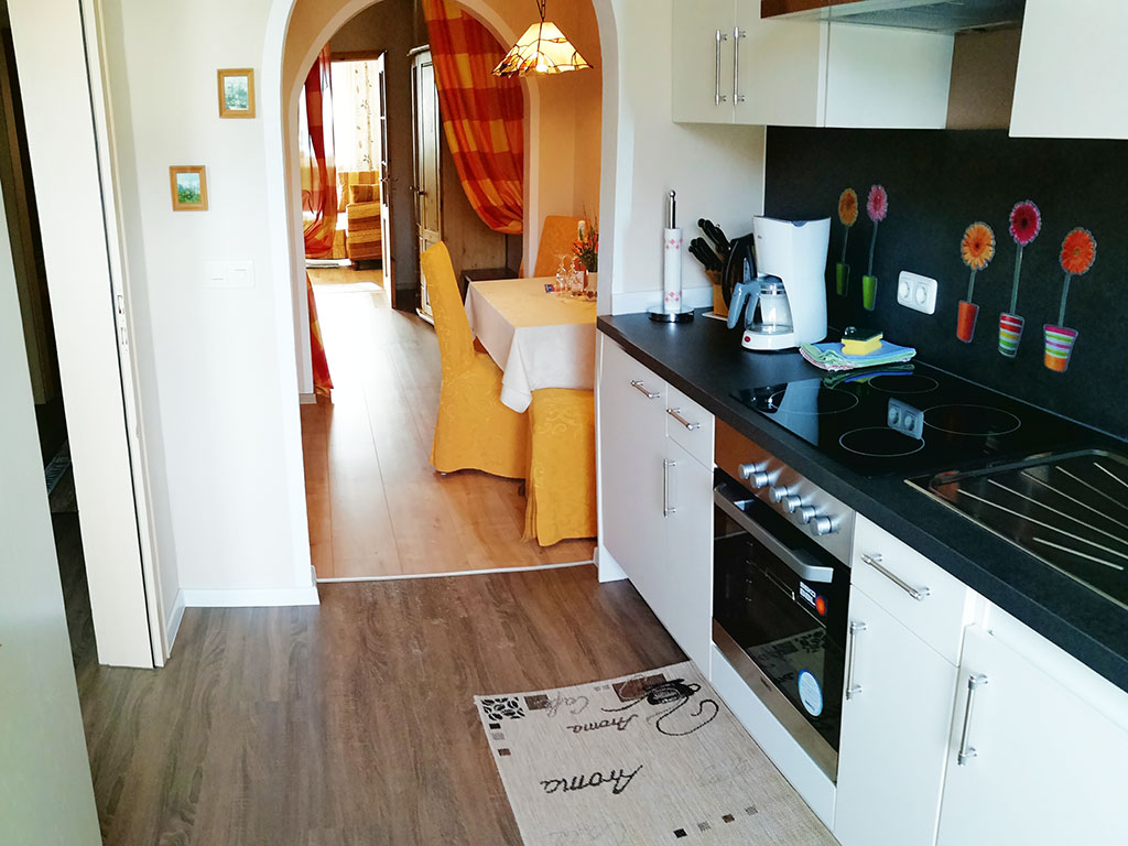 Modern ausgestattete Nichtraucher-Ferienwohnung (2019 neu renoviert)60qm. Wohn-und Schlafraum getrennt mit Doppelbett, (Komforthöhe 60cm), verstellbarer Lattenrost,Bandscheiben-Matratzen.Küchenzeile komplett eingerichtet,Tisch-Küchentücher,Handtücher,Bettwäsche vorhanden.Balkon Flachbildschirm mit SAT-Anschluß, Radio, W-Lan kostenlos. Sanitär: Badezimmer mit Fenster,WC-Dusche (niedriger Duscheingang), Fußbodenheizung, Bademantel. PKW-Stellplatz direkt vorm Haus. Nur 600m zur Rottal-Terme, 7 Gehminuten. Gute Einkaufsmöglichkeit (Bäcker,Metzger) um die Ecke.