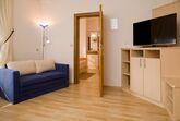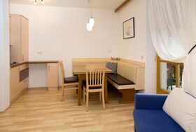 Das Herzlzimmer ist mit Holzmöbeln eingerichtet. Ein separates Genießerschlafzimmer und eine Wohlfüfhlecke mit Küche stehen hier für Sie bereit.