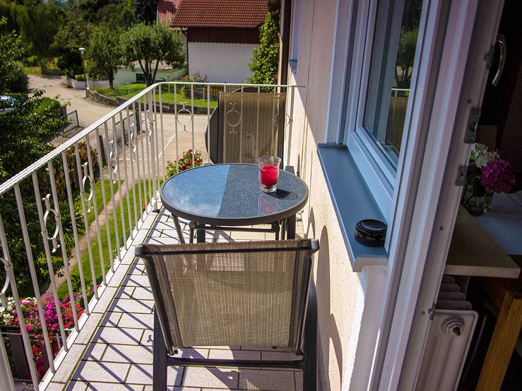 Die Ferienwohnung im Obergeschoss hat 50qm und ist bestens geeignet für 1-2 Personen. Das gemütliche Schlafzimmer ist ausgestattet mit einem Doppelbett. Die geräumige Wohnküche besteht aus Essecke, Schlafcouch und Küchenzeile. Die voll ausgestattete Küchenzeile incl. Geschirrspüler, Kaffeemaschine, Kühlschrank, Mikrowelle, Toaster, sowie Tisch- und Küchenwäsche lässt keine Wünsche offen. Das Badezimmer mit Doppel-Waschbecken, Badewanne und Dusche/WC, Bademänteln und Fön rundet das Gesamtbild ab. Ein besonderes Highlight ist die großartige Aussicht, die Sie von Ihrem Balkon genießen können. Bettwäsche und Handtücher sind vorhanden. Parkplätze finden Sie direkt vor dem Haus. Die Wohnung befindet sich in Bad Birnbach, nur wenige Minuten von der Rottal Terme und dem Golfpark Bella Vista entfernt.
