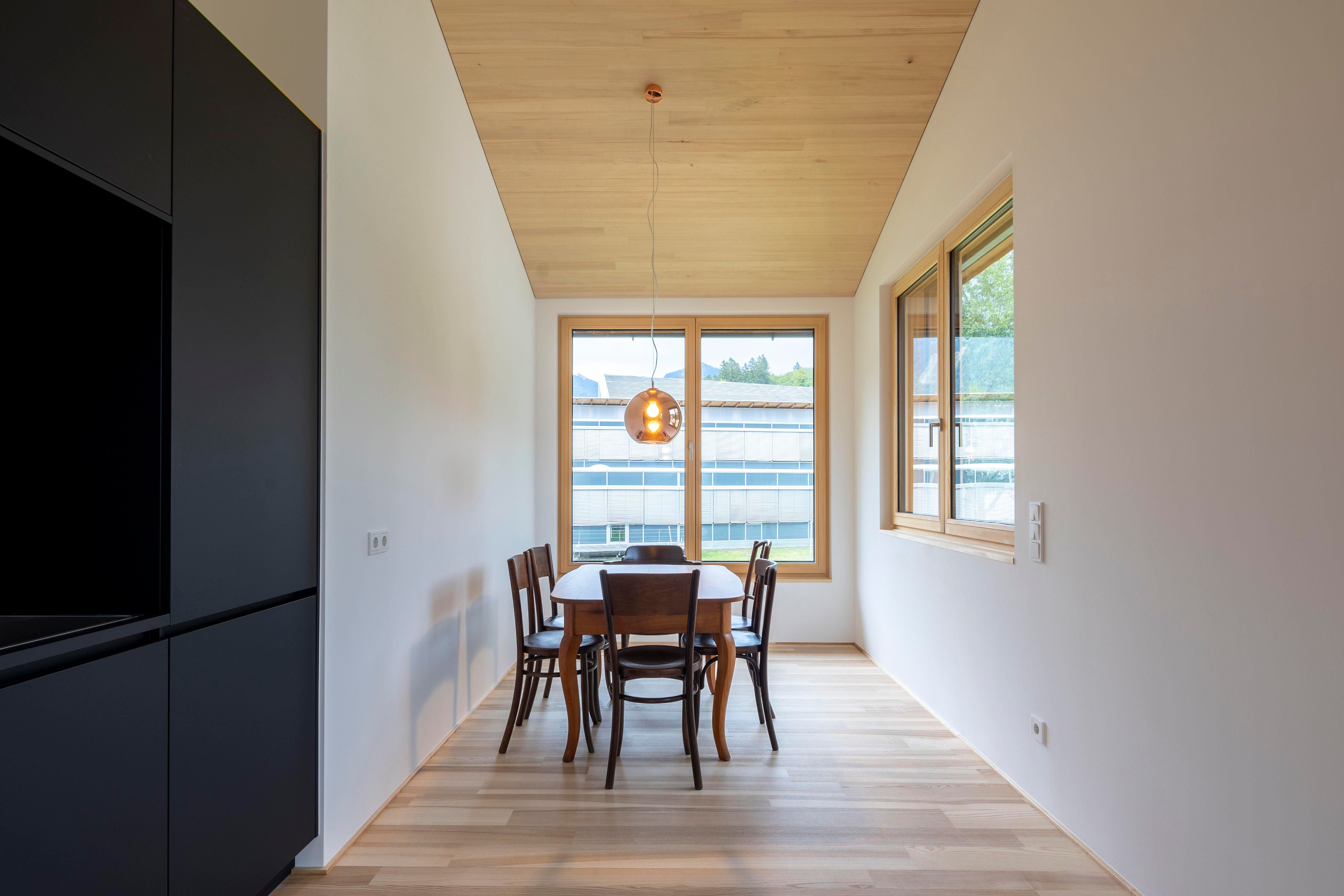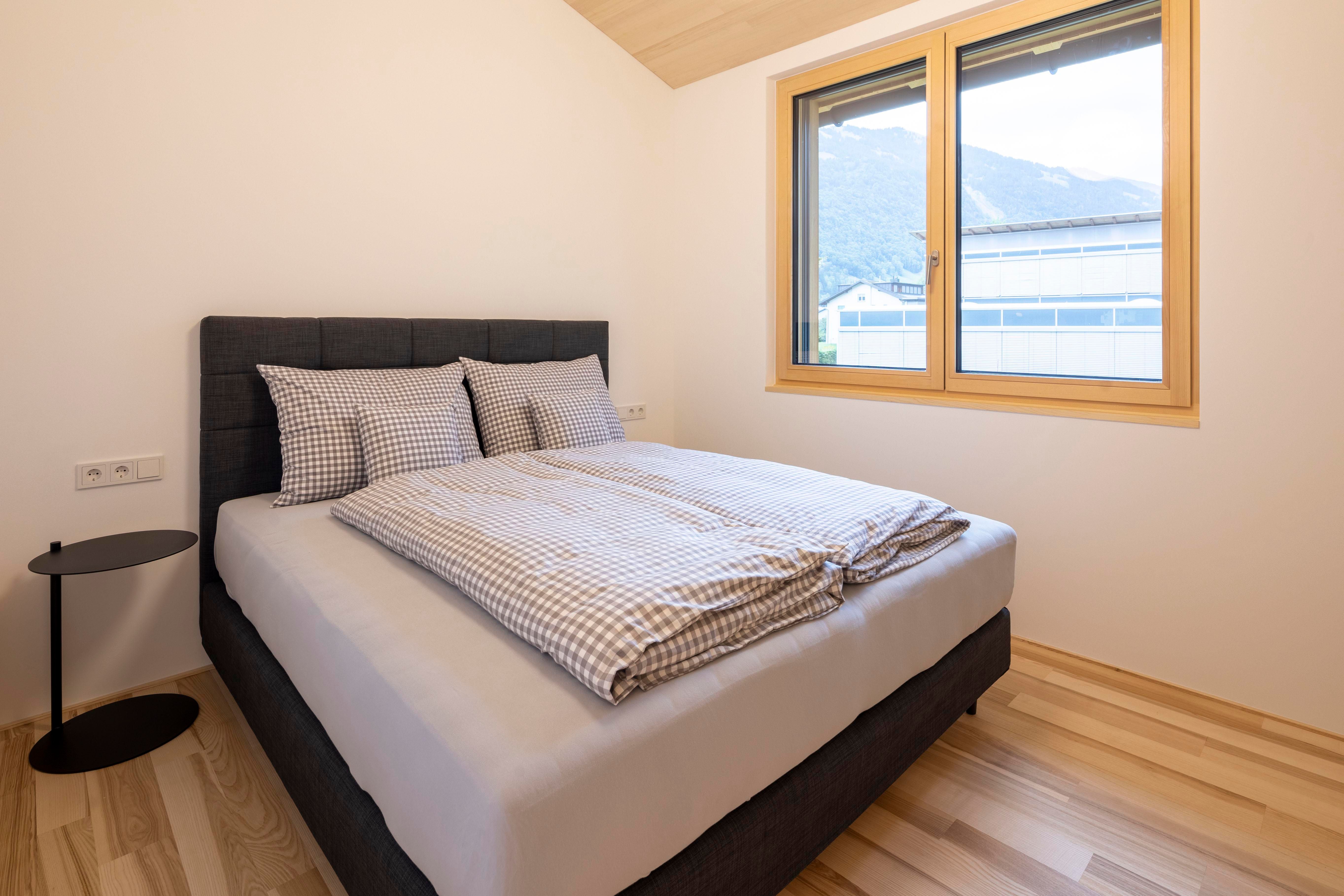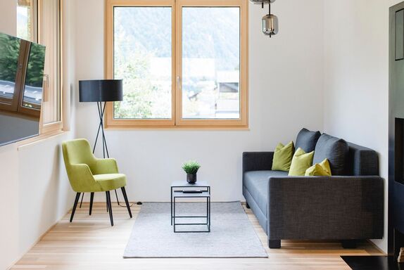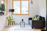 Apartment sechs im Obergeschoss bietet auf 69 m² Platz für 2 bis 6 Personen und beeindruckt mit seinem stilvollen Design, der durchdachten Raumaufteilung und einem gemütlichen Holzofen. Genießen Sie beim Frühstück den Panoramablick auf die umliegenden Berge und lassen Sie sich vom natürlichen Licht durch die großen Fenster verwöhnen.