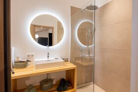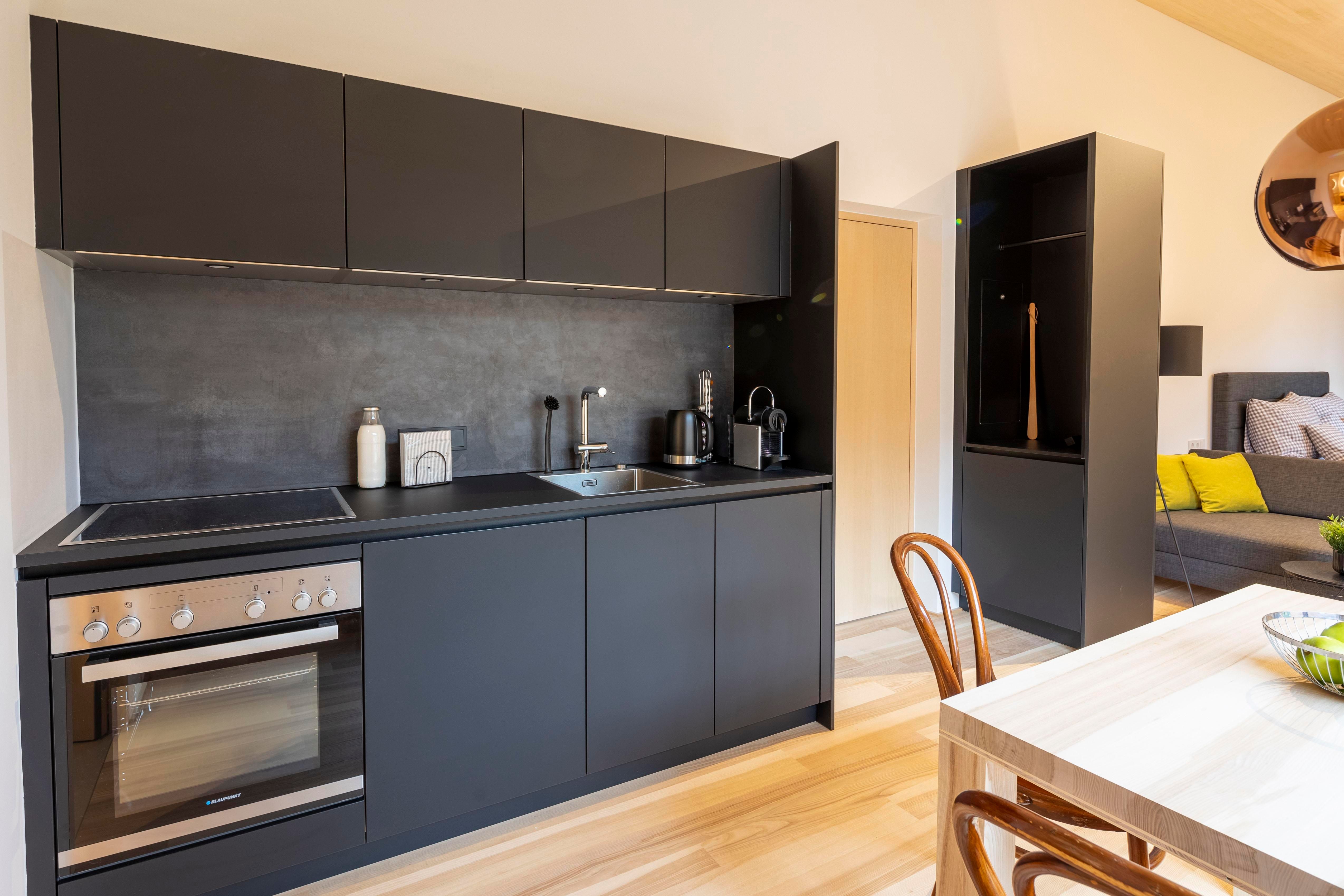 Apartment sieben ist ein elegantes Loft im Obergeschoss und bietet auf 33 m² eine luftige, offene Gestaltung für 1 bis 3 Personen. Das moderne Design und die stilvolle Einrichtung schaffen ein einladendes Ambiente, das zum Entspannen einlädt.