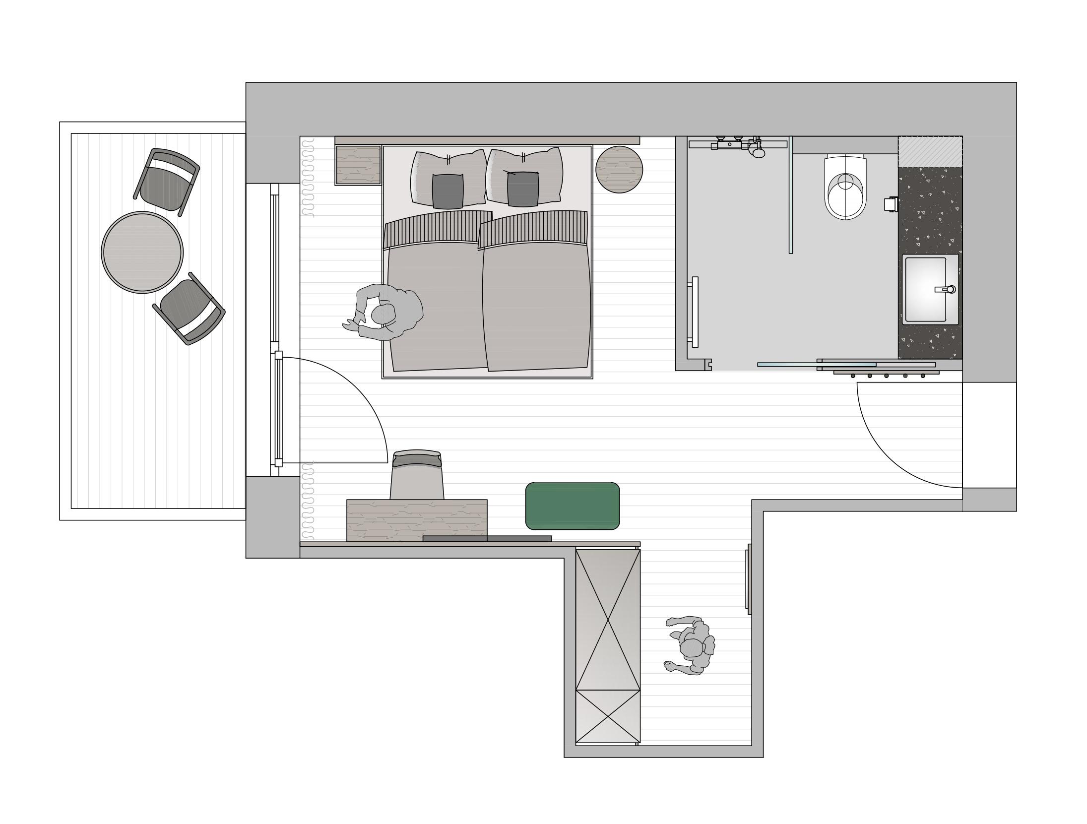 Unsere Doppelzimmer überzeugen mit ihrem zeitlosen Design – und der Balkon lädt ein, die frische Bergluft in vollen Zügen zu genießen.