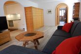 Im Inneren der 57m² großen, nach Südosten ausgerichteten Wohnung, erwartet Sie ein klassisch modern eingerichtetes Wohnzimmer, das zum Entspannen auf dem gemütlichen Sofa oder im Lesefauteuil einlädt. Ein clever integriertes Schrank-Doppelbett im Wohnzimmer lässt sich im Handumdrehen für zusätzliche Schlafmöglichkeiten umwandeln. Das Schlafzimmer ist komfortabel mit einem Doppel- und einem Kajütenbett ausgestattet. Die Küche überzeugt durch ihre moderne Ausstattung und der Esstisch mit Eckbank bietet ausreichend Platz.