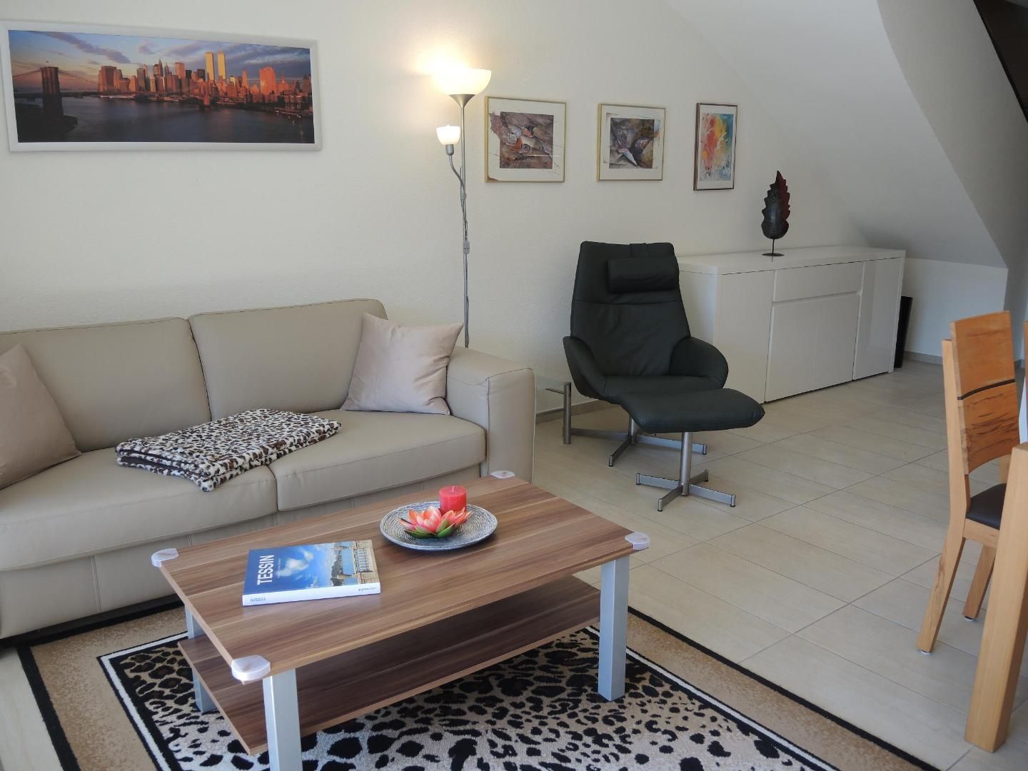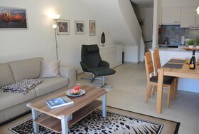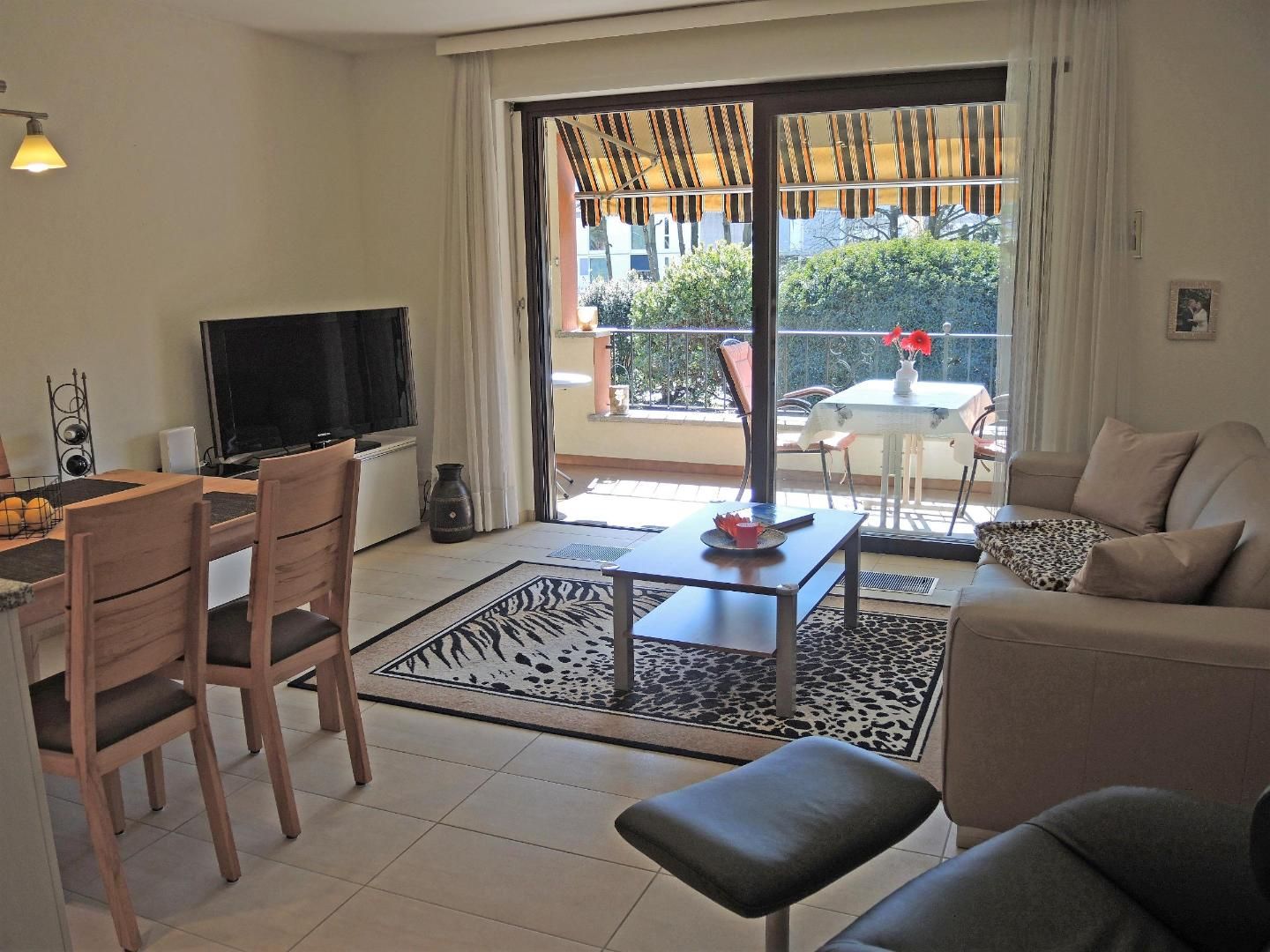 Die gemütliche 2.5 Zimmer-Duplex-Wohnung bietet Platz für 2 bis 4 Personen. Die untere Ebene besteht aus einem Garderobenschrank im Eingangsbereich und einem grosszügigen Wohn-, Esszimmer mit einer offenen, gut ausgestatteten Küche, sowie einer Gästetoilette. Das Wohnzimmer ist mit einem gemütlichen Ledersofa, das mit wenigen Griffen zu einem Doppelbett mit Matratze verwandelbar ist und einem Esstisch mit 4 Sitzplätzen ausgestattet. Flachbild-Fernseher mit Internet (WLAN). Der Balkon bietet einen wunderschönen Blick in die gepflegte Gartenanlage und einen Esstisch mit 4 Stühlen. Im oberen Stockwerk befindet sich das Schlafzimmer mit Doppelbett, einem grossen Spiegelschrank und einem Flachbild-Fernseher. Ausgang zum Balkon der ebenfalls mit einem Bistrotisch ausgestattet ist und einen Blick in die Gartenanlage bietet. Hier befindet sich auch das Badezimmer mit begehbarer Dusche (Regendusche) und WC. Für alle, die Ihre Ferien mit Arbeit verbinden, steht im Vorraum ein Büro mit Schreibtisch und Drehstuhl zur Verfügung. Den Aussenpool der Residenz und die Liegewiese können Sie mitbenützen. Reservierter Parkplatz in der Tiefgarage.