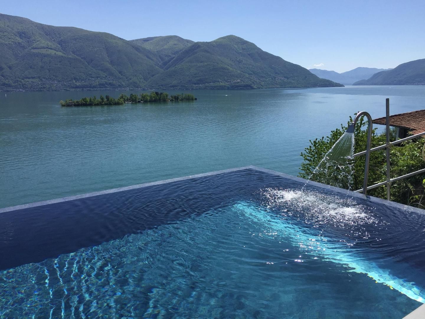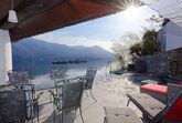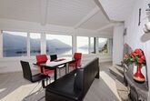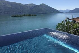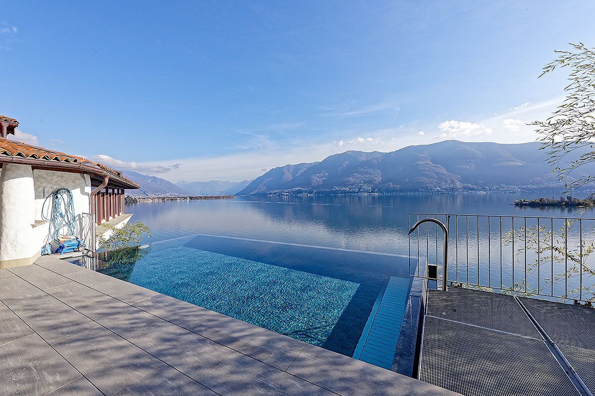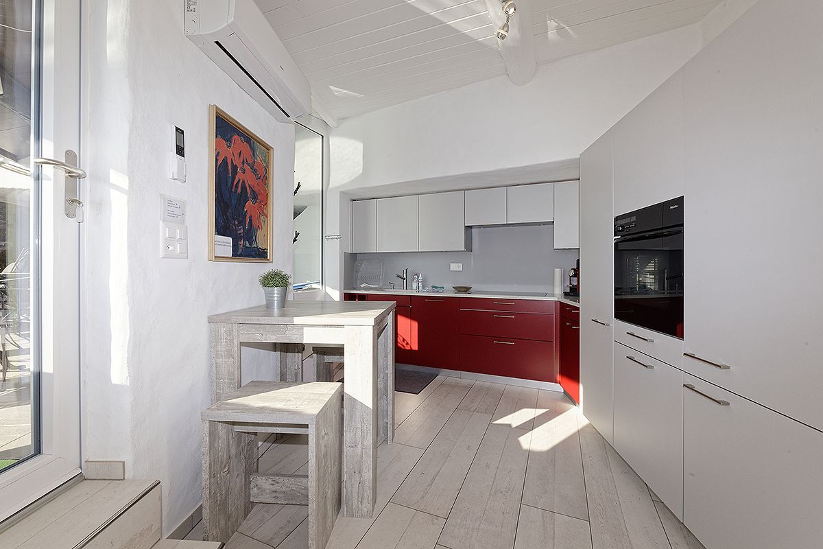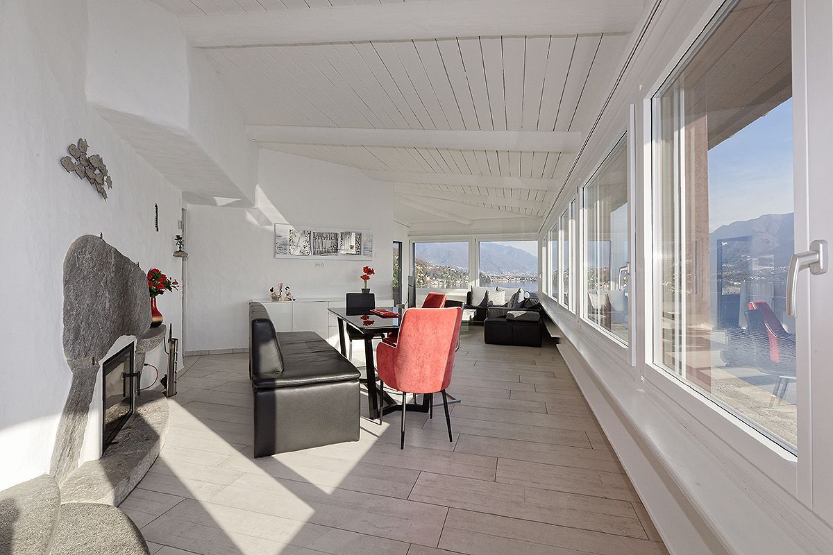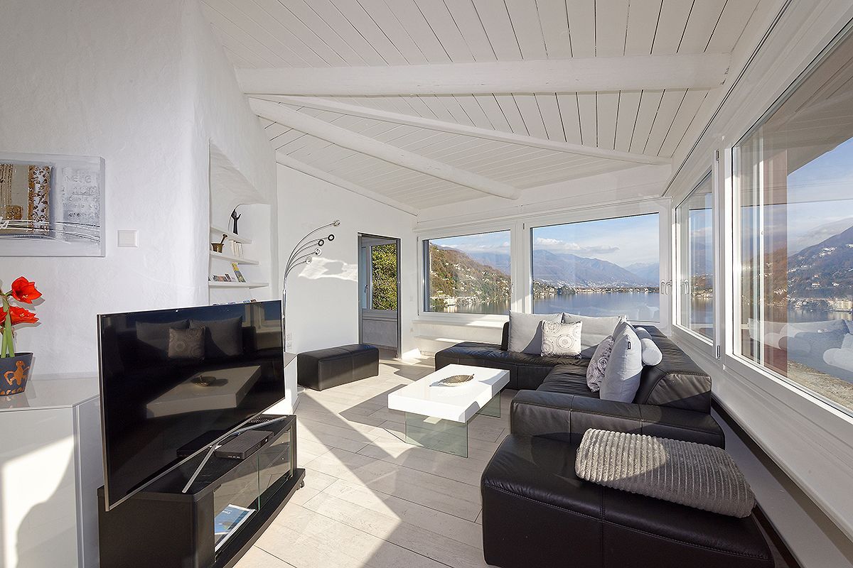 Das neu renovierte 4.5 Zimmer-Ferienhaus befindet sich oberhalb der Uferstrasse in Porto Ronco und bietet einen atemberaubenden 180° Panoramablick. Es erwartet Sie 100m2 Wohnfläche auf zwei Ebenen. Eingangsbereich mit Treppenabgang zum Wohnbereich. Das Wohnzimmer ist ausgestattet mit einer gemütlichen Wohnlandschaft, Flachbildschirm-TV und Esstisch mit Sitzbank und Stühlen. Die durchgehende, grosse Fensterfront des Wohnraums garantiert einen Ausblick von jeder Ecke aus. Besonders am Abend zaubert die indirekte Beleuchtung entlang der Fensterfront und das lichterfunkelnde Seeufer von Ascona bis hin ins benachbarte Italien eine ganz besondere Stimmung. Die offene Küche ist mit einer Frühstücksbar und modernen Elektrogeräten ausgestattet. Auf dieser Ebene befindet sich ein Doppelschlafzimmer mit en-suite Bad sowie ein weiteres Badezimmer. Vom Wohnzimmer aus gelangen Sie auf die Terrasse und den Poolbereich. Nehmen Sie Platz und geniessen Sie den einmaligen Blick auf die direkt vor Ihnen liegenden Brissago-Inseln.