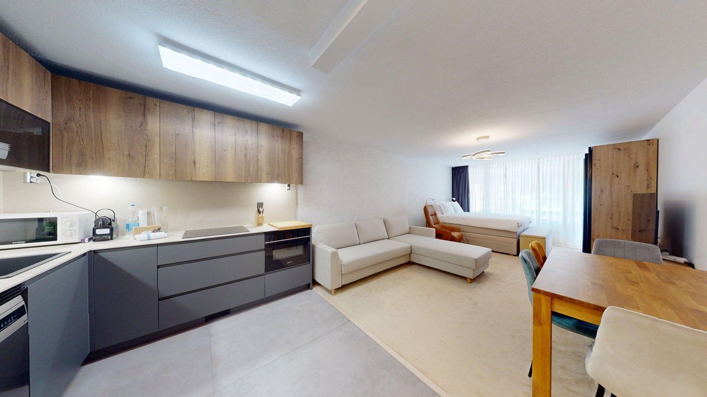 Die neu renovierte, moderne Studiowohnung Allod Bad 307 liegt im 3. Stock eines zentralgelegenes Mehrfamilienhaus in St. Moritz und bietet auf 40 m² Platz für bis zu drei Personen – ideal für Paare, kleine Familien oder Individualreisende.
