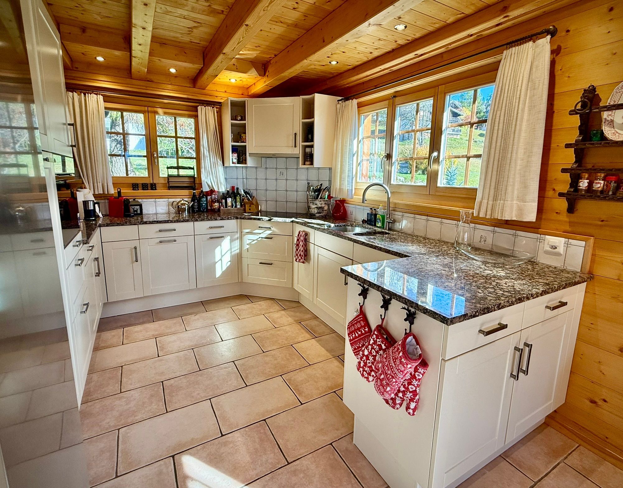 Auf die Gäste warten fünf Schlafzimmer und vier Badezimmer, die für Komfort und Privatsphäre aller Mitreisenden sorgt. Der grosse offene Ess/und Wohnbereich mit 2 Sofaecken, der lange Esstisch und die helle, stilvolle Küche, sorgen für eine wohlige Atmosphäre an geselligen Abenden.