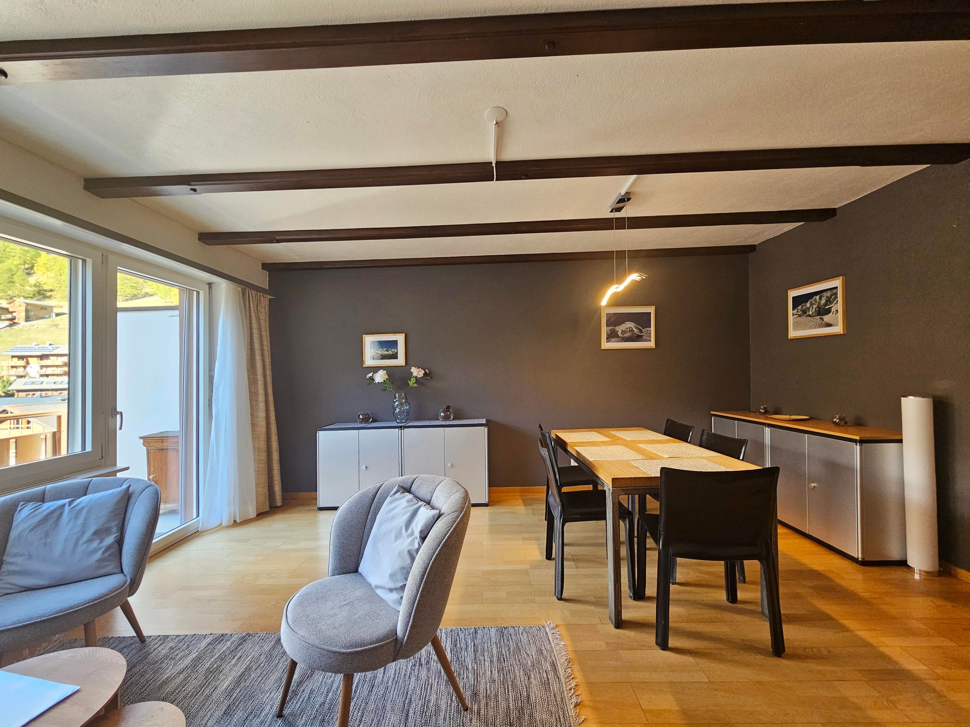 Die Maisonettewohnung befindet sich im 4. Stock des Hauses (ohne Aufzug), was einen der besten möglichen Ausblicke im Dorf ermöglicht.