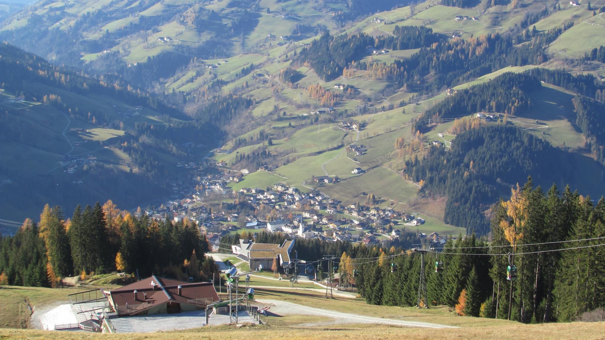 Die Schiabfahrt Widmoos endet in unmittelbarer Nähe des Appartements. Von dort erreicht man über eine kurze Zufahrt direkt die Talstation der Flying Mozart Gondelbahn und die Schibusstation. Von der Mittelstation Rote Gondel kann man bei entsprechender Schneelage mit den Schiern bis ca. 500 m unterhalb des Hauses abfahren.