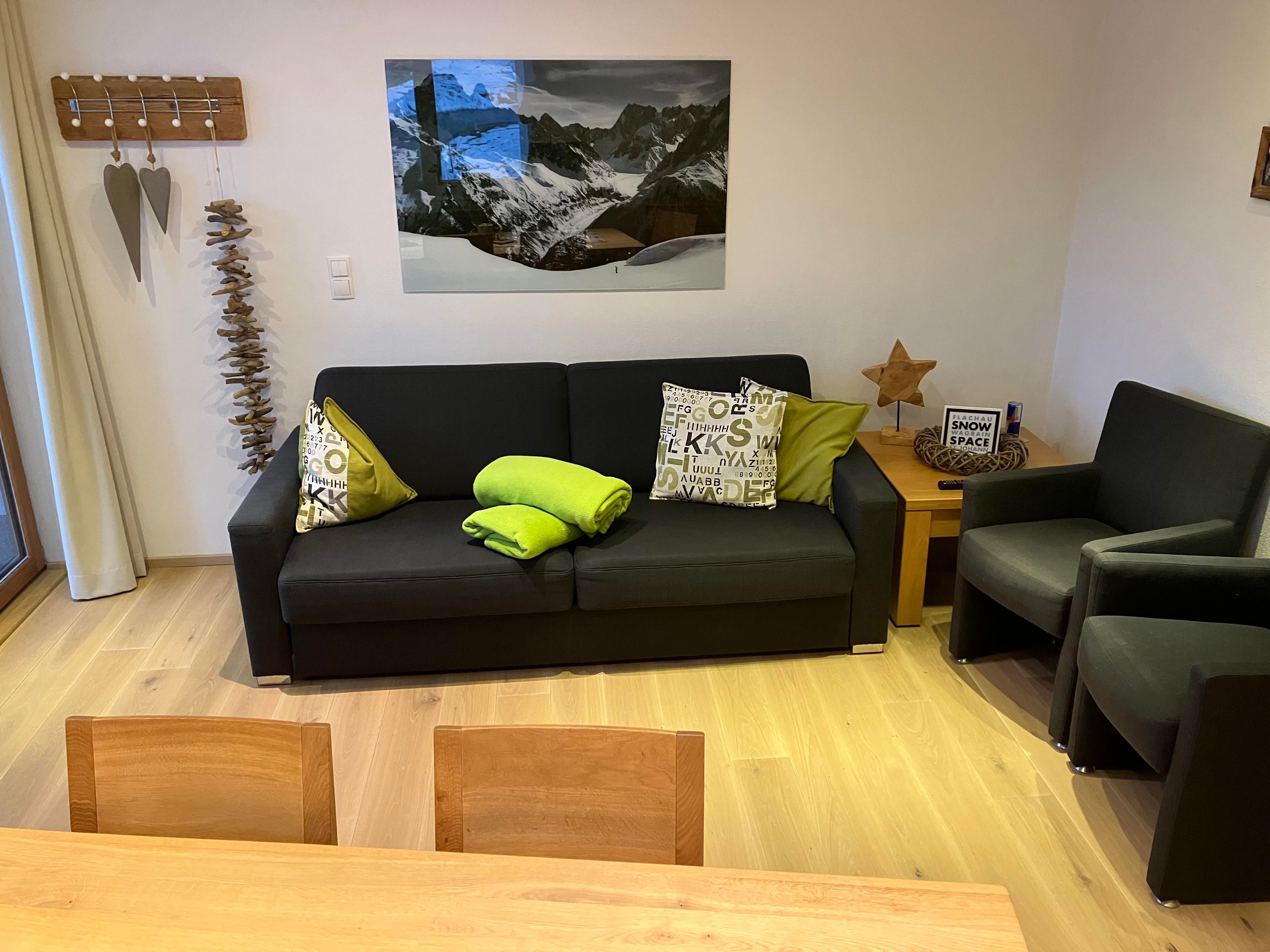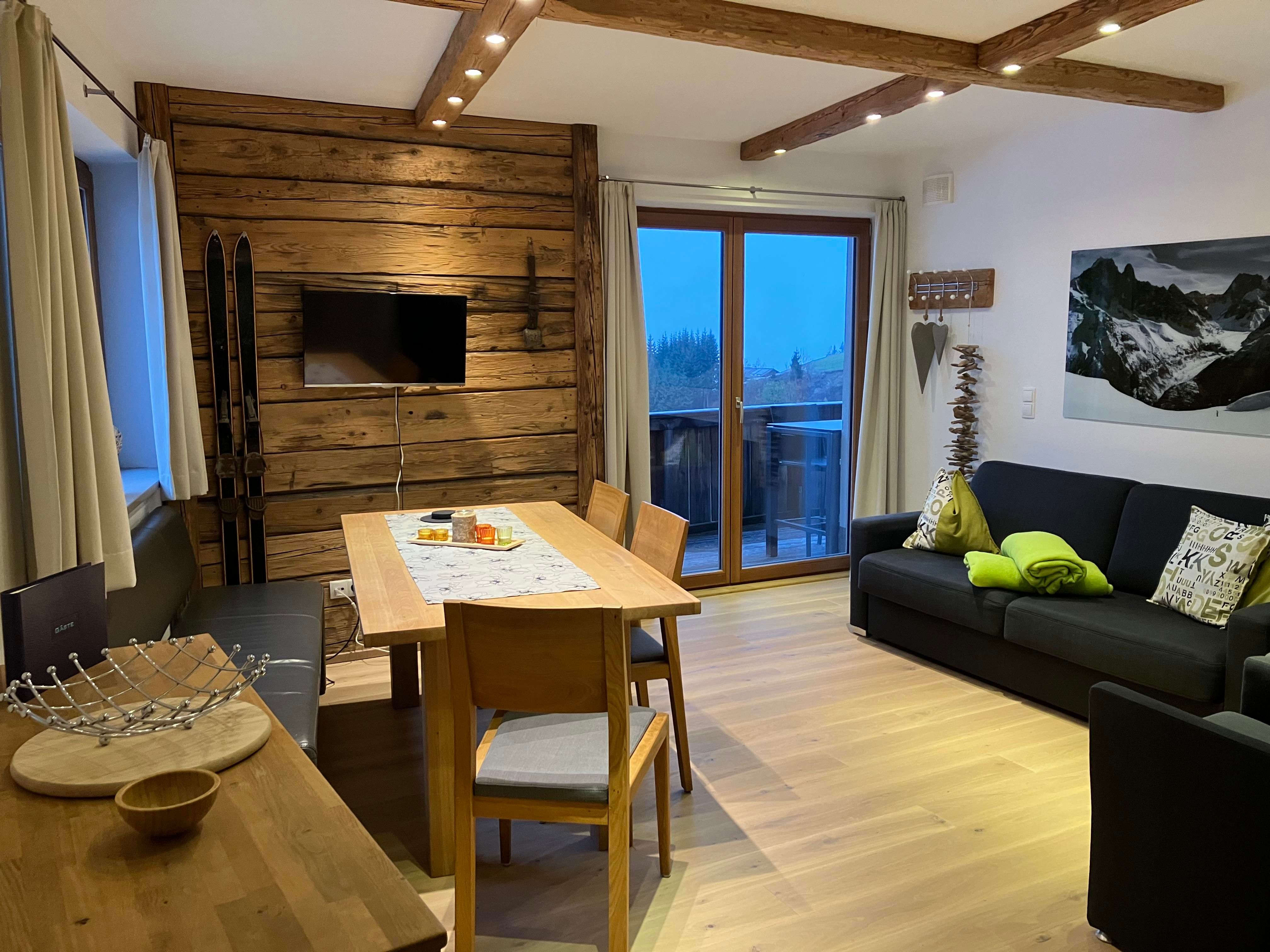 Wohnraum mit Esstisch+Sofabett für 2 Pers.,TV